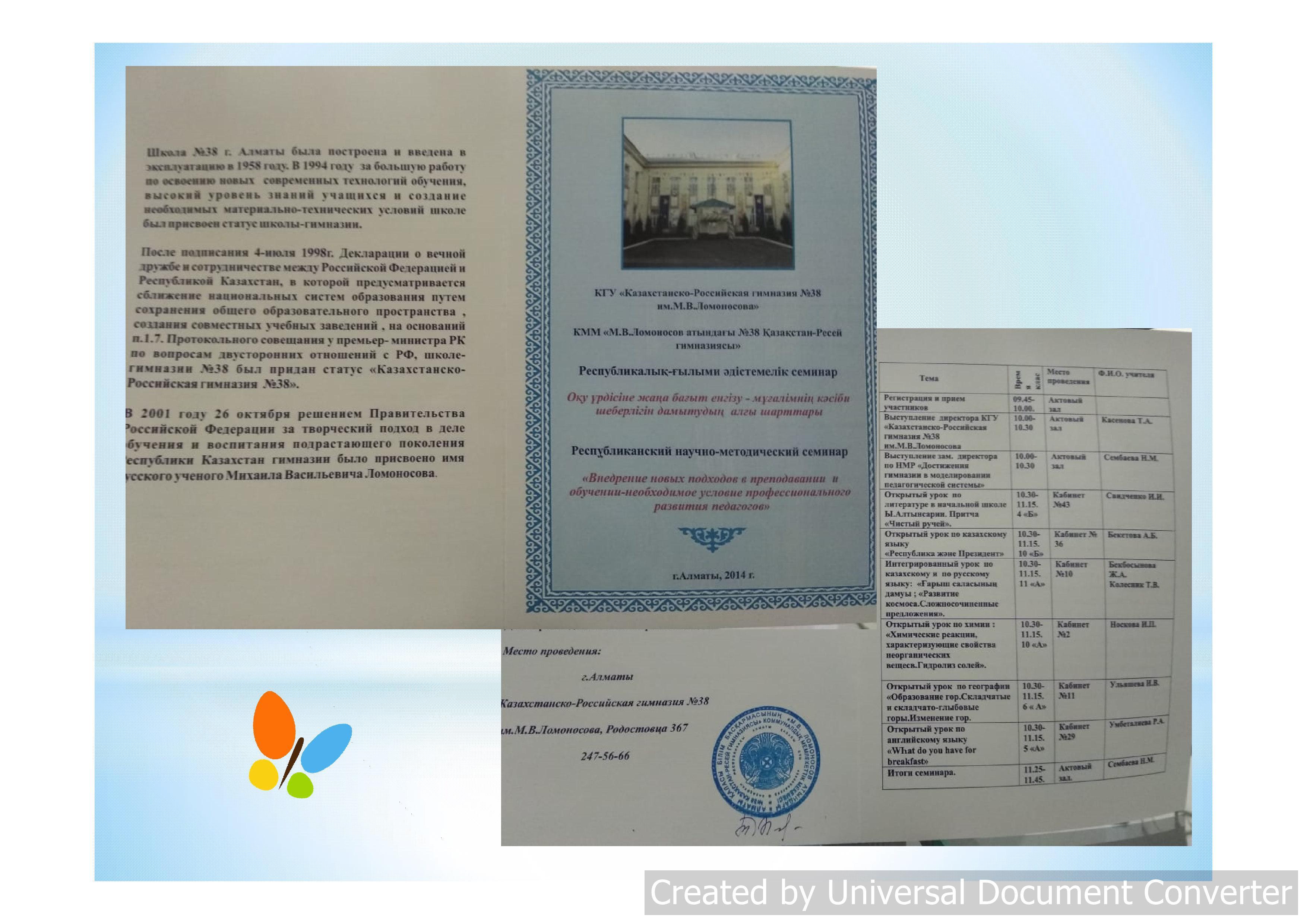 «М.Ломоносов атындағы №38 Қазақстан-Ресей гимназиясы»