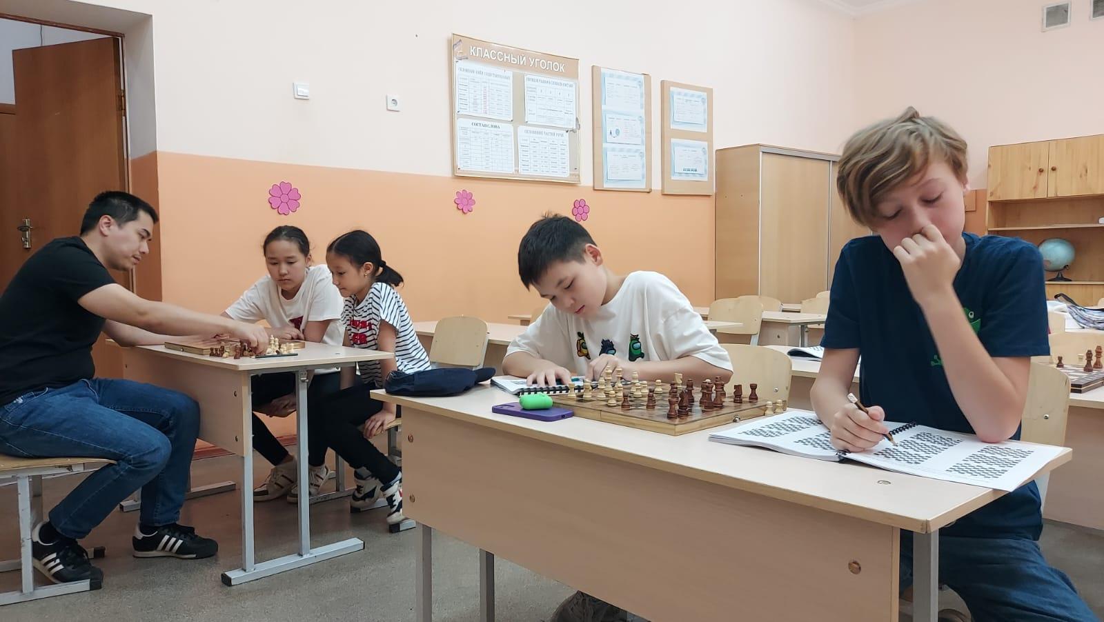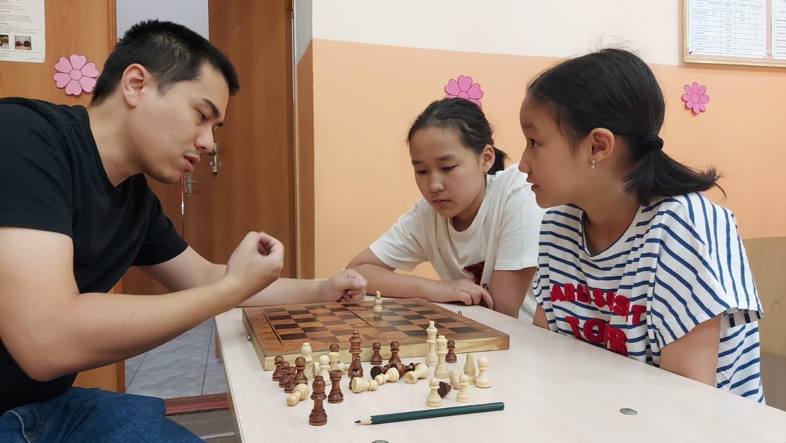 Нургалимов Чингиз (тренер по шахматам) обучает детей летнего лагеря правилам и основным приемам игры в шахматы. Дети особенно любят играть друг с другом и побеждать друг друга. Летний лагерь проводится не только для физического развития, но и для интеллектуального развития.