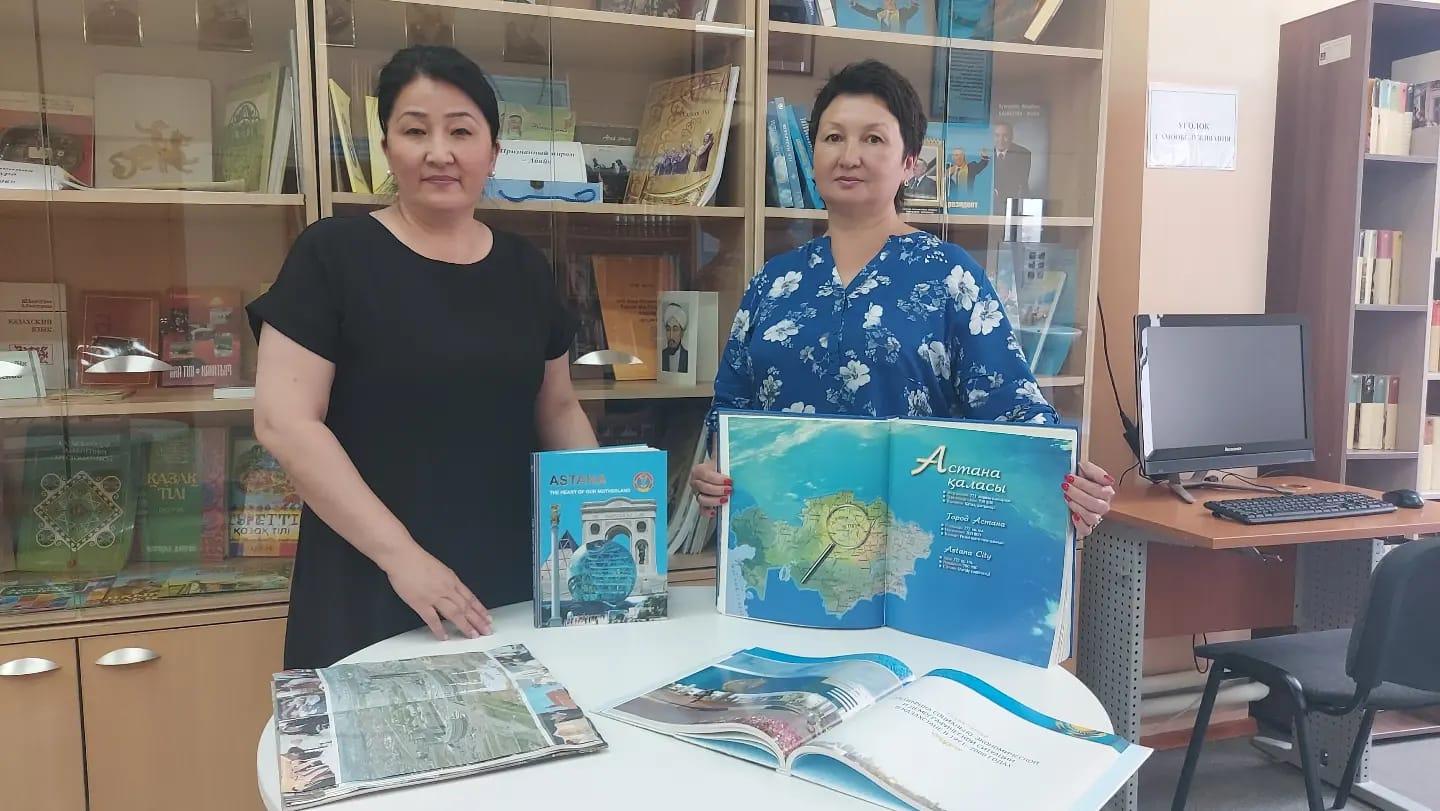 В школьной библиотеке был проведен оброз книг ко дню столицы среди посетителей "Клуба читателей" летнего лагеря заведующей библиотеки Ардак Баркытбаевной и исполнителем обязанности директора Самал Едресовной.