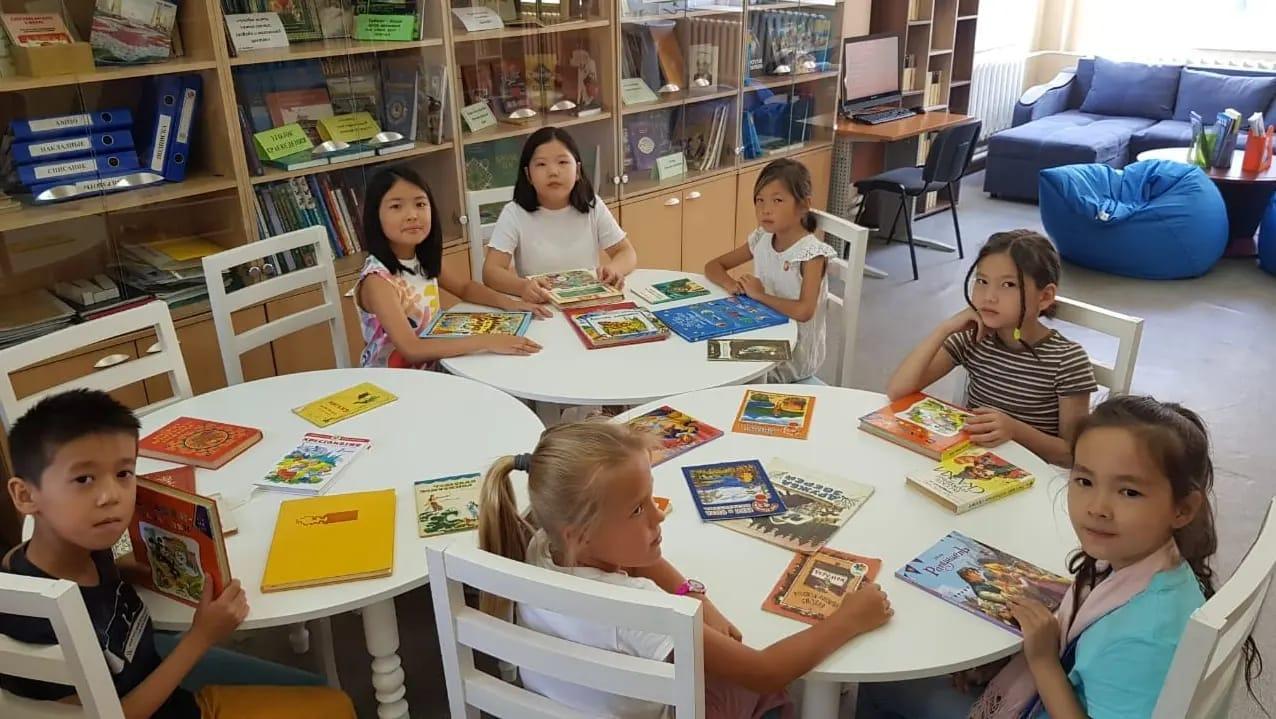 Мектеп кітапханасында кітапхана меңгерушісі Ардақ Барқытбайқызы мен директордың міндетін атқарушы Самал Едресовна жазғы лагерьдің "оқырмандар клубына" келушілер арасында Астана күніне арналған кітаптарға шолу жасады.