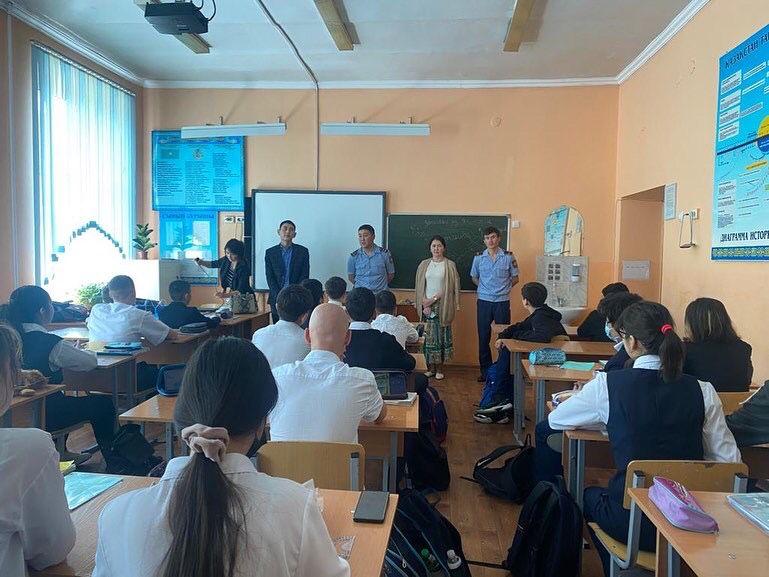 Мектеп инспекторы Б. М. Керімбай 7-сынып оқушыларымен Құқық бұзушылықтың алдын алу бойынша түсіндіру жұмыстарын жүргізді Школьный инспектор Керимбай Б.М провел разъяснительную работу с учениками 7-х классов по профилактике правонарушений