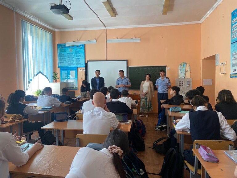 Школьный инспектор Керимбай Б.М провел разъяснительную работу с учениками 7-х классов по профилактике правонарушений