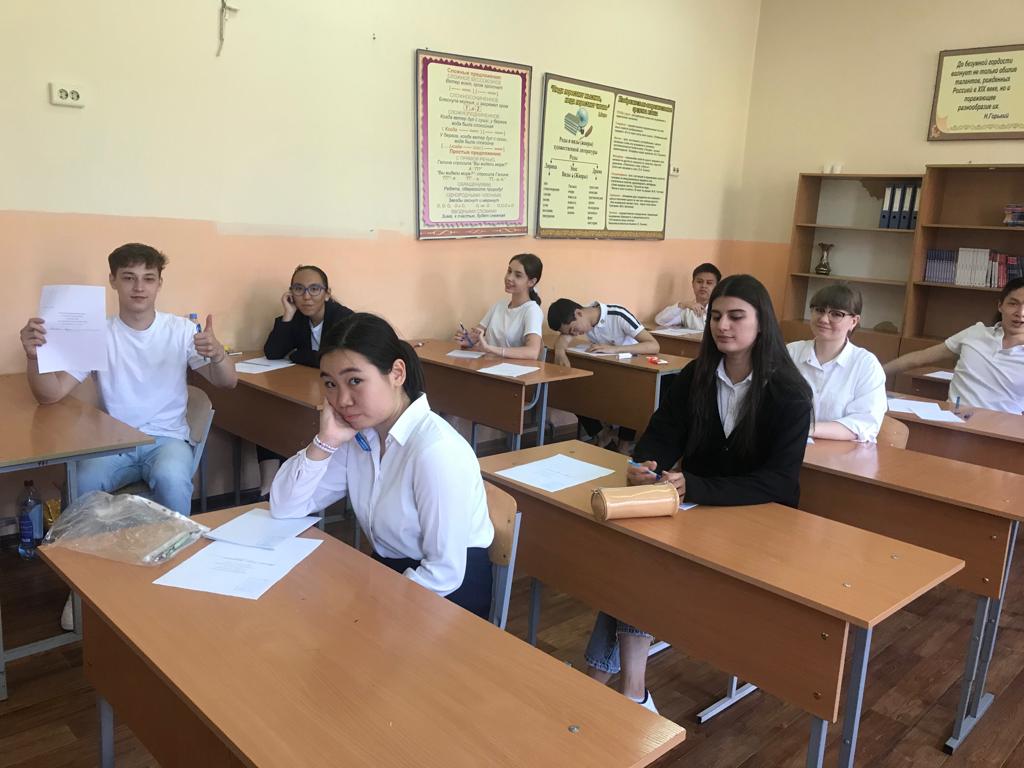 Государственные экзамены по казахскому языку для учащихся 11-х классов проходит под контролем опытных учителей казахского языка: Бекбосынова Ж.А, Кужакова С.Б, Коксеген Ж.К. Ассистенты: Налибаева А.А., Набиева К.А. в 11А классе , Коксеген Ж.К., Кадирбек Р.К. в 11Б классе , Буланбаева Б.К., Бабажанова М.Б. в 11В классе.