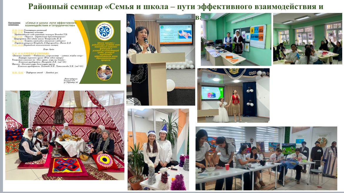 «Біртұтас тәрбие; Отбасы және мектеп – тиімді өзара әрекеттесу және ынтымақтастық жолдарын құру» атты аудандық семинар.