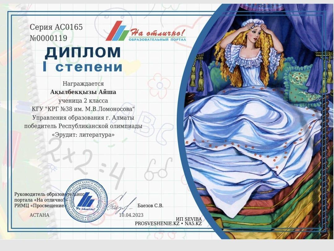 11 сәуір 2023 0 1 2 3 4 5 «Математика» және «Әдебиет» пәндері бойынша Республикалық олимпиада жүлдегері