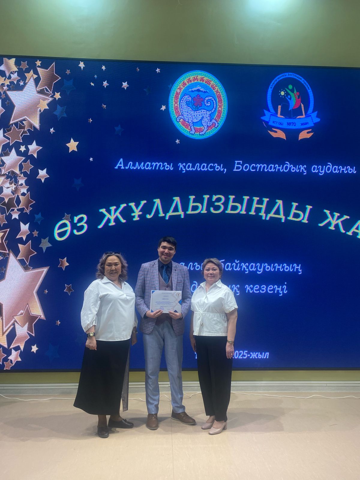 17 сәуір 2025 0 1 2 3 4 5 Мұғалімдеріміздің жетістіктері Ағылшын тілі пәні мұғалімі Ибралинов Дамирхан Кенжебекович "Өз жұлдызыңды жақ" аудандық байқауында бірінші орынды иеленді