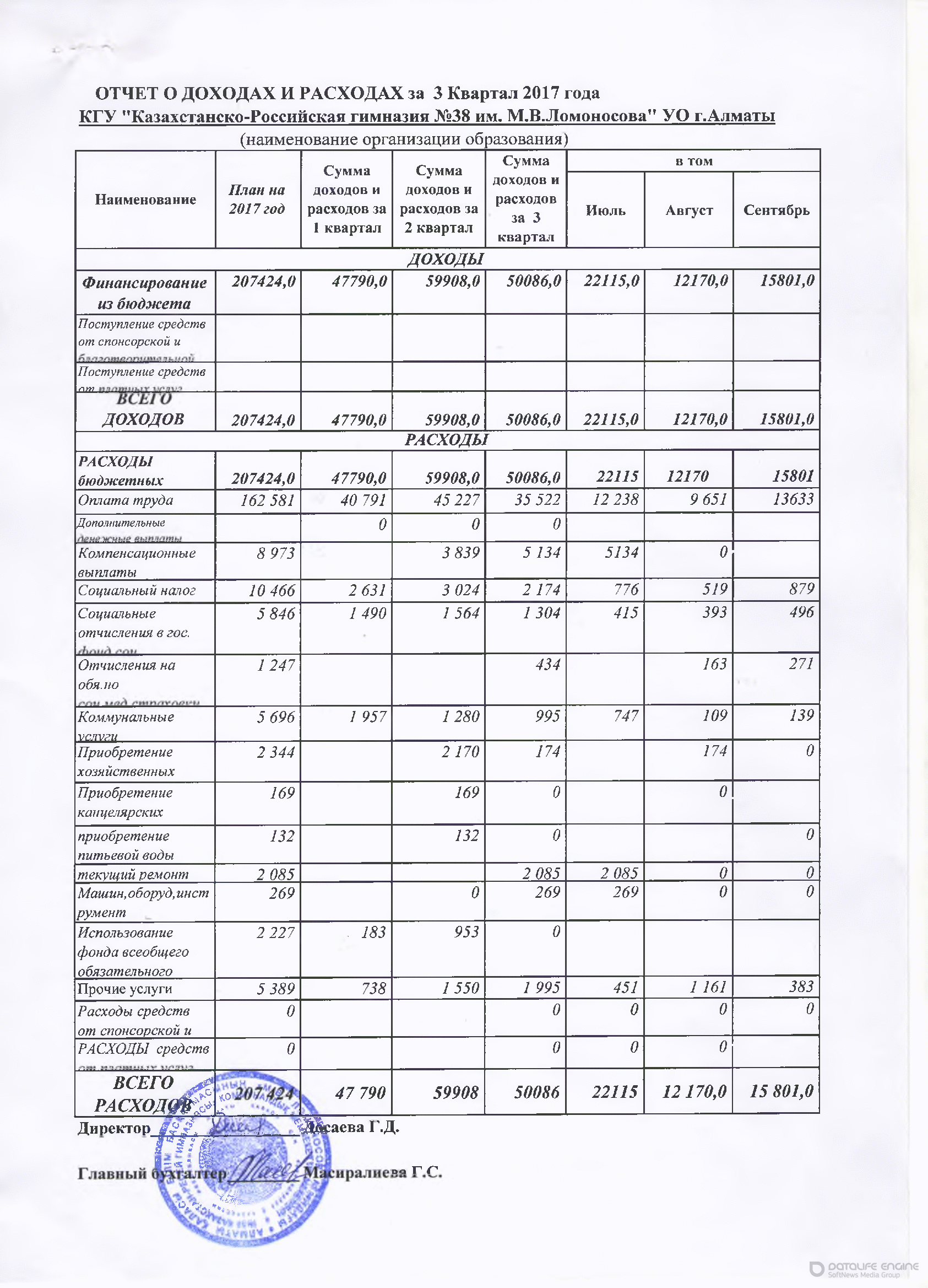 » Отчет о доходах и расходах за 3 квартал 2017 г