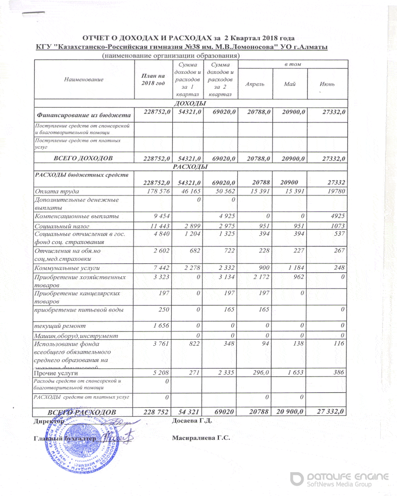 » Отчет о доходах и расходах за 2 квартал 2018 г