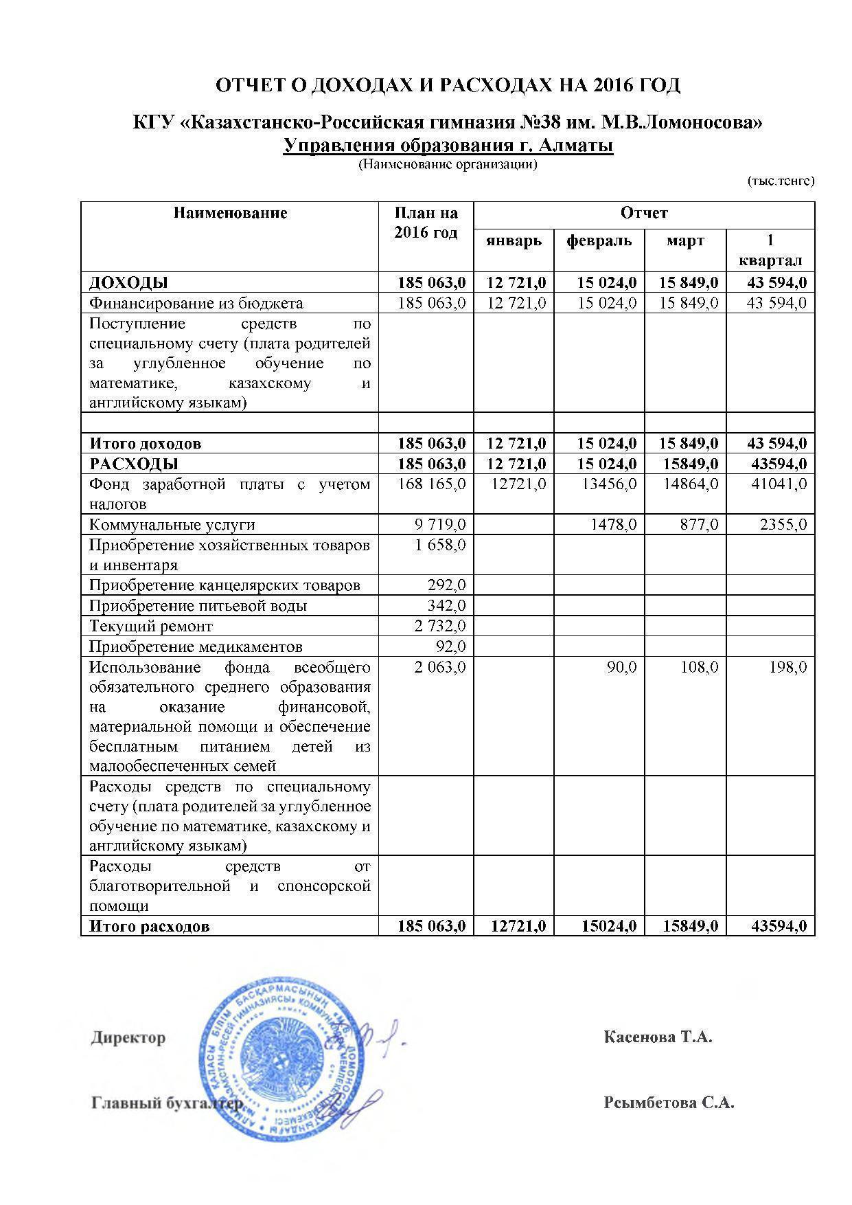 Отчет о доходах и расходах за 1 квартал 2016 и пояснительная записка