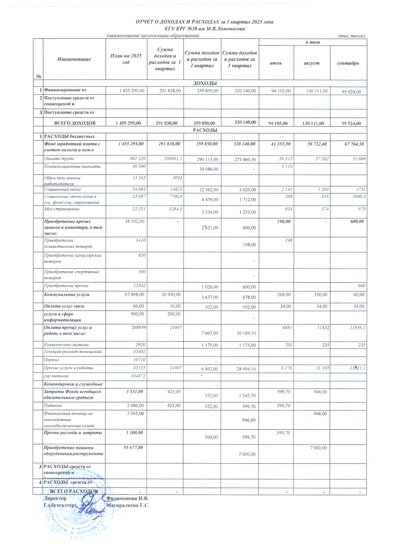 кірістер мен шығыстар есебі 3 тоқсан