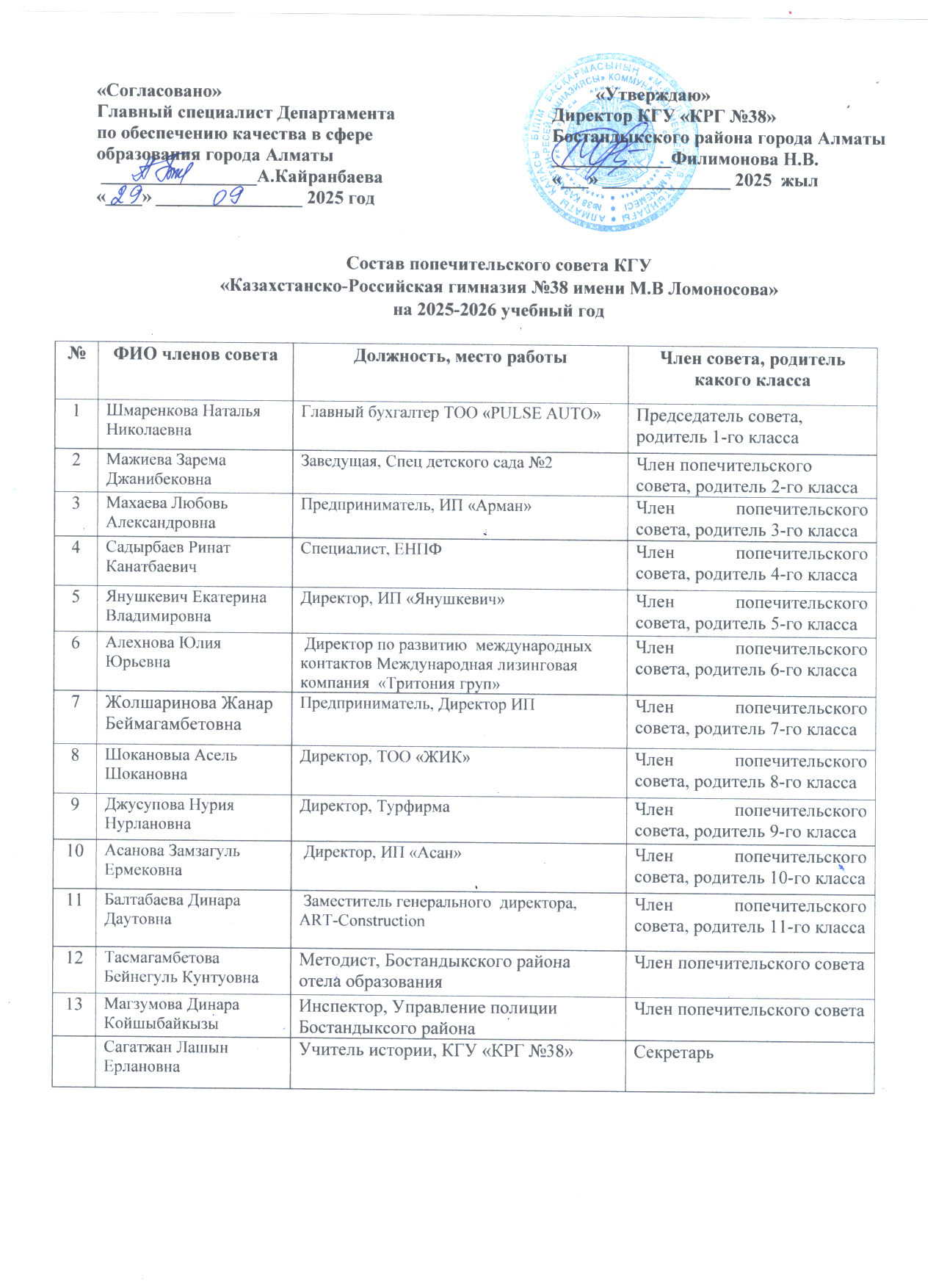 Қамқоршылық кеңесінің құрамы 2025-2026 оқу жылы