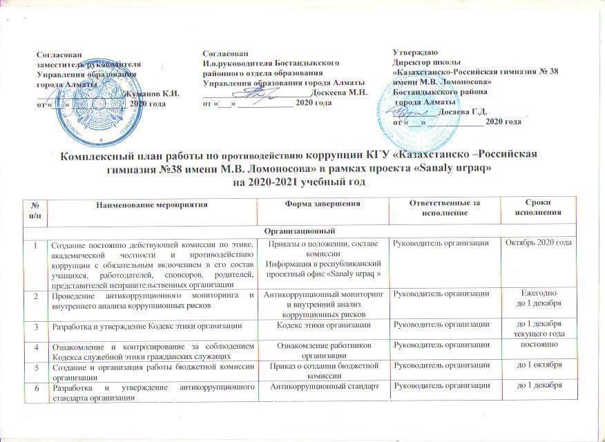 14 желтоқсан 2020 0 1 2 3 4 5 Сыбайлас жемқорлыққа қарсы іс-қимыл жөніндегі жұмыс жоспары План работы по противодействию коррупции