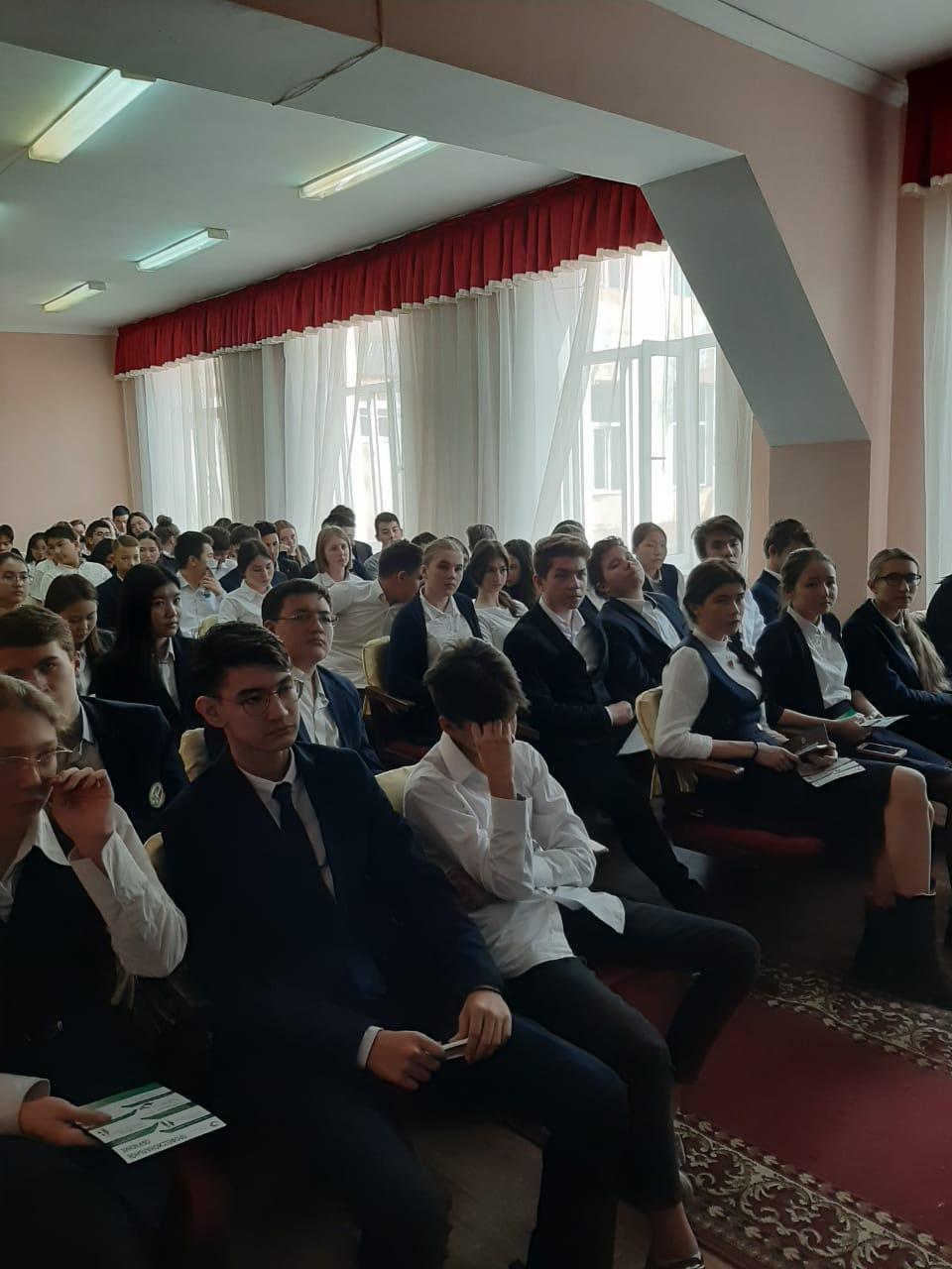 05 желтоқсан 2019 0 1 2 3 4 5 Встреча представителя Центра занятости населения г.Алматы с выпускниками гимназии в рамках Программы развития продуктивной занятости и массового предпринимательства 2017-2021 годы "Еңбек"