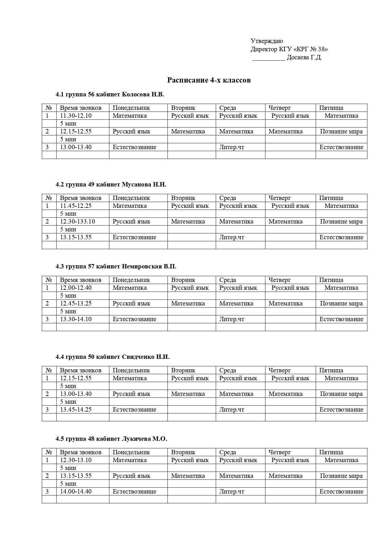 Сабақ кестесі 2018-19 Расписание уроков 2018-19