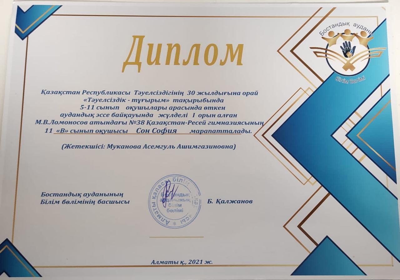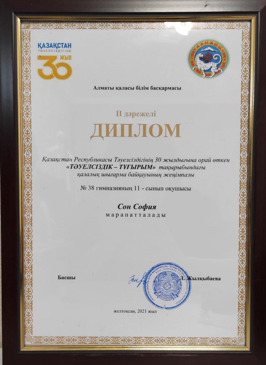 30 мамыр 2022 0 1 2 3 4 5 11В сынып оқушысы София қалалық эссе байқауына қатысып, екінші орынды жеңіп алды.