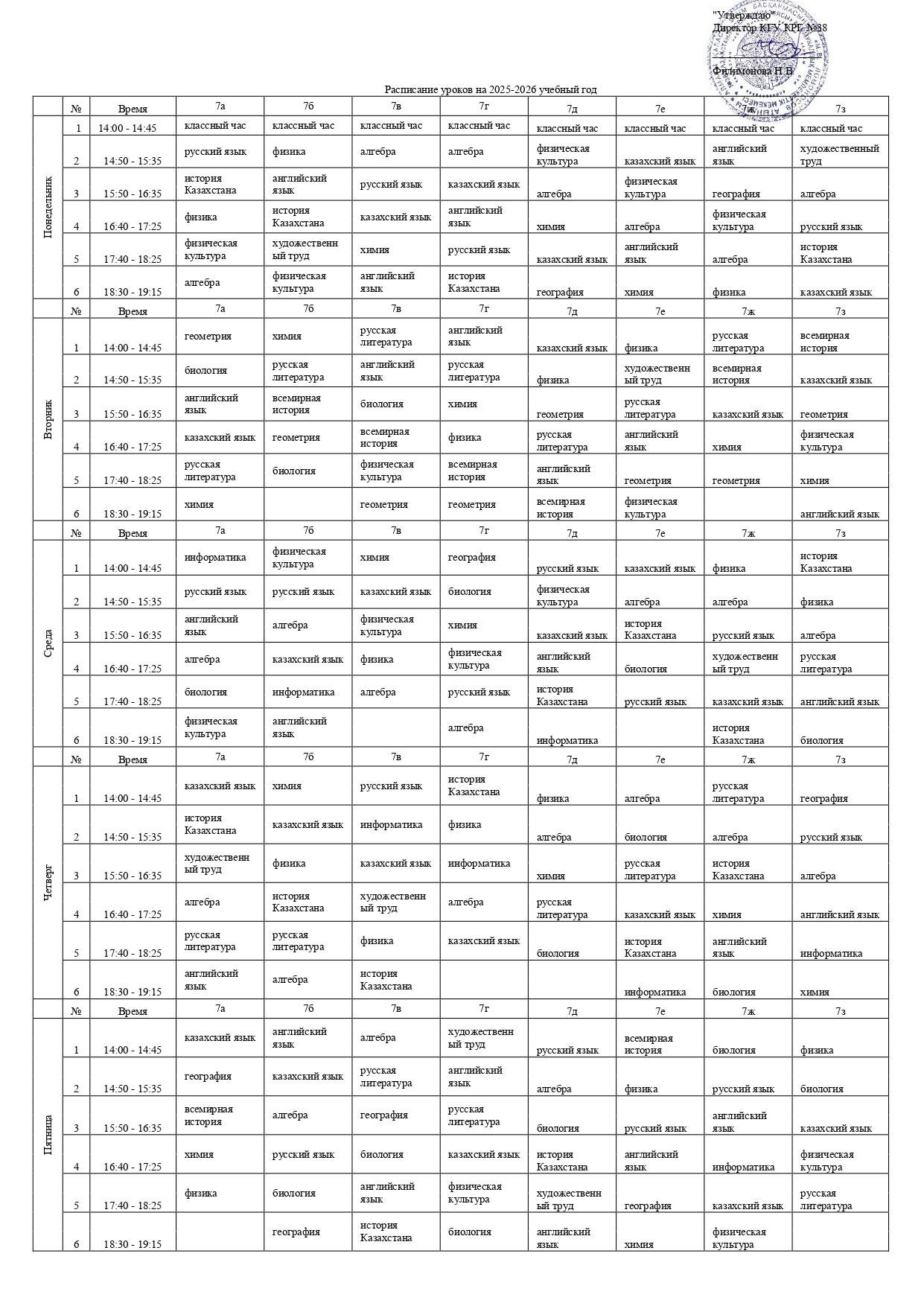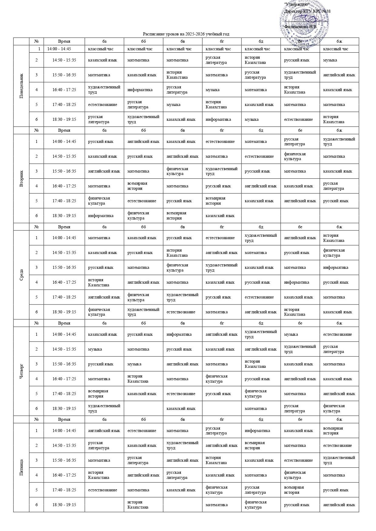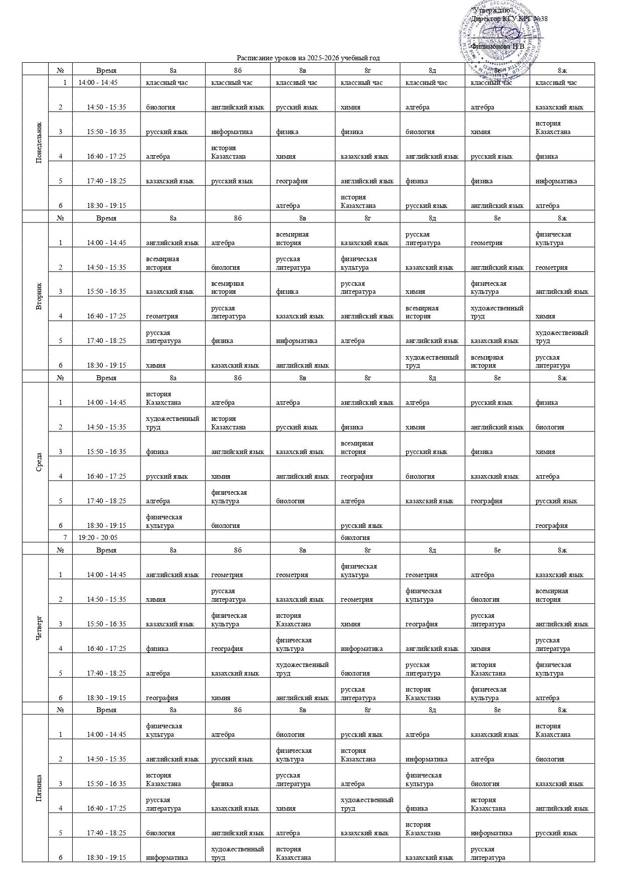 2025-2026 оқу жылының сабақ кестесі (2-ауысым)
