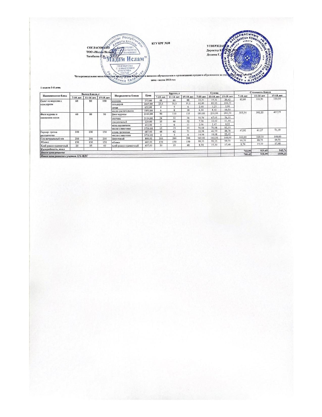 Ас мәзірі 03.04.2023жыл 1 апта 1 күн