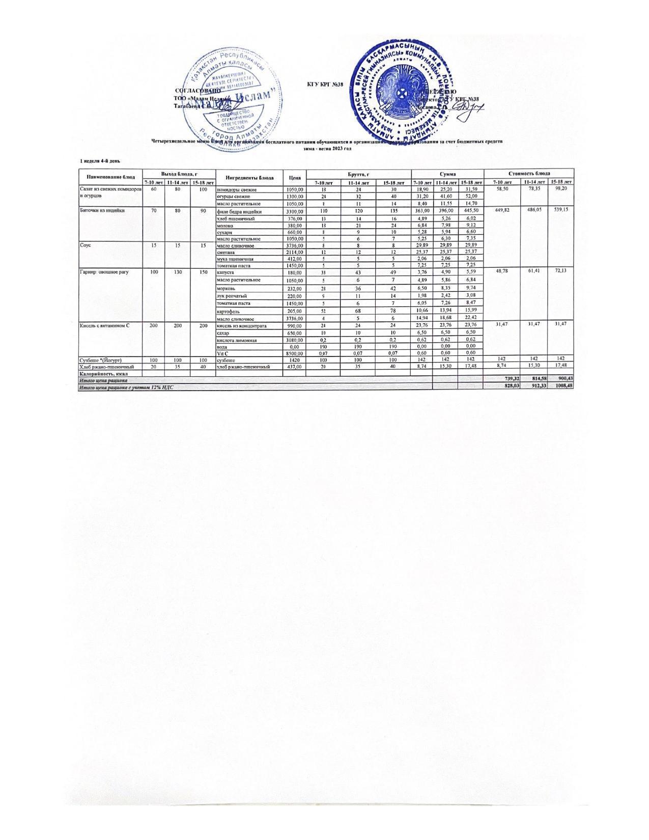 Ас мәзірі 6.04.2023жыл 1 апта 4күн