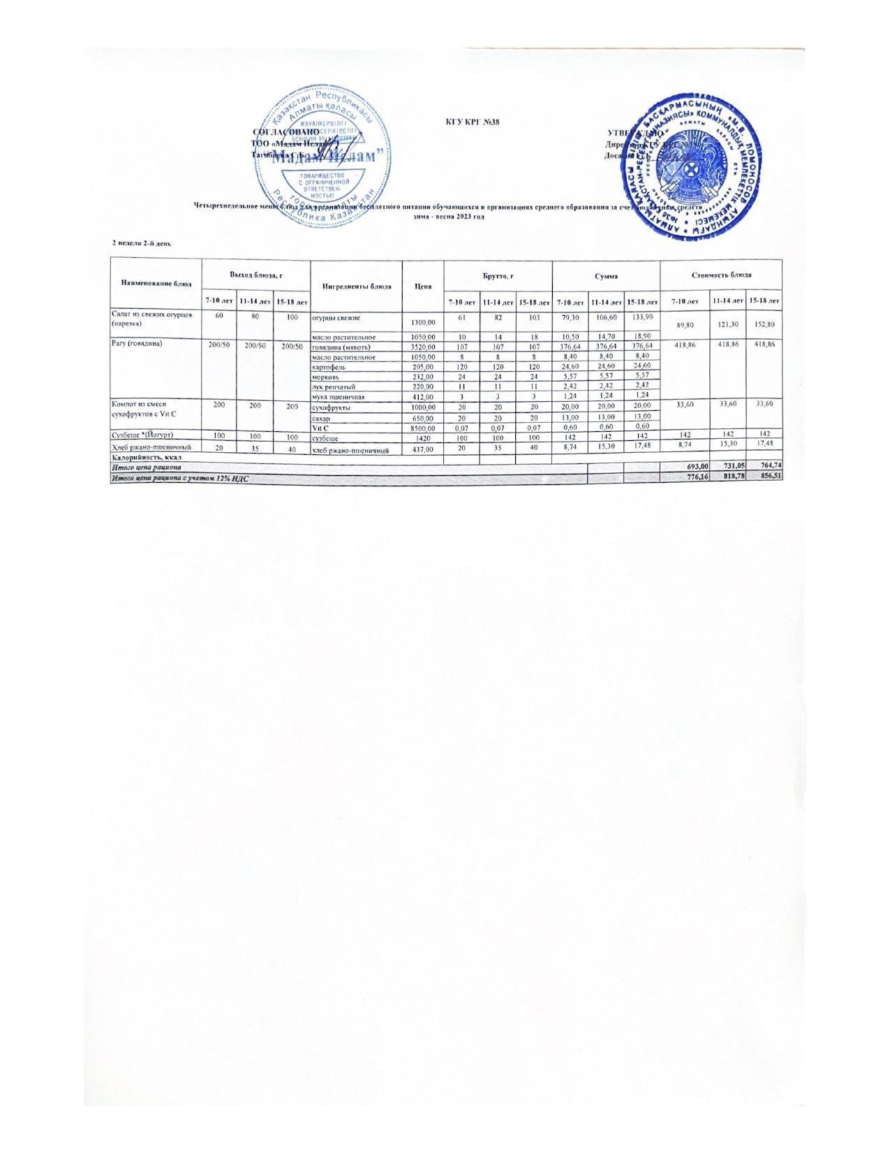 Ас мәзірі 11.04.2023жыл 2апта 2күн