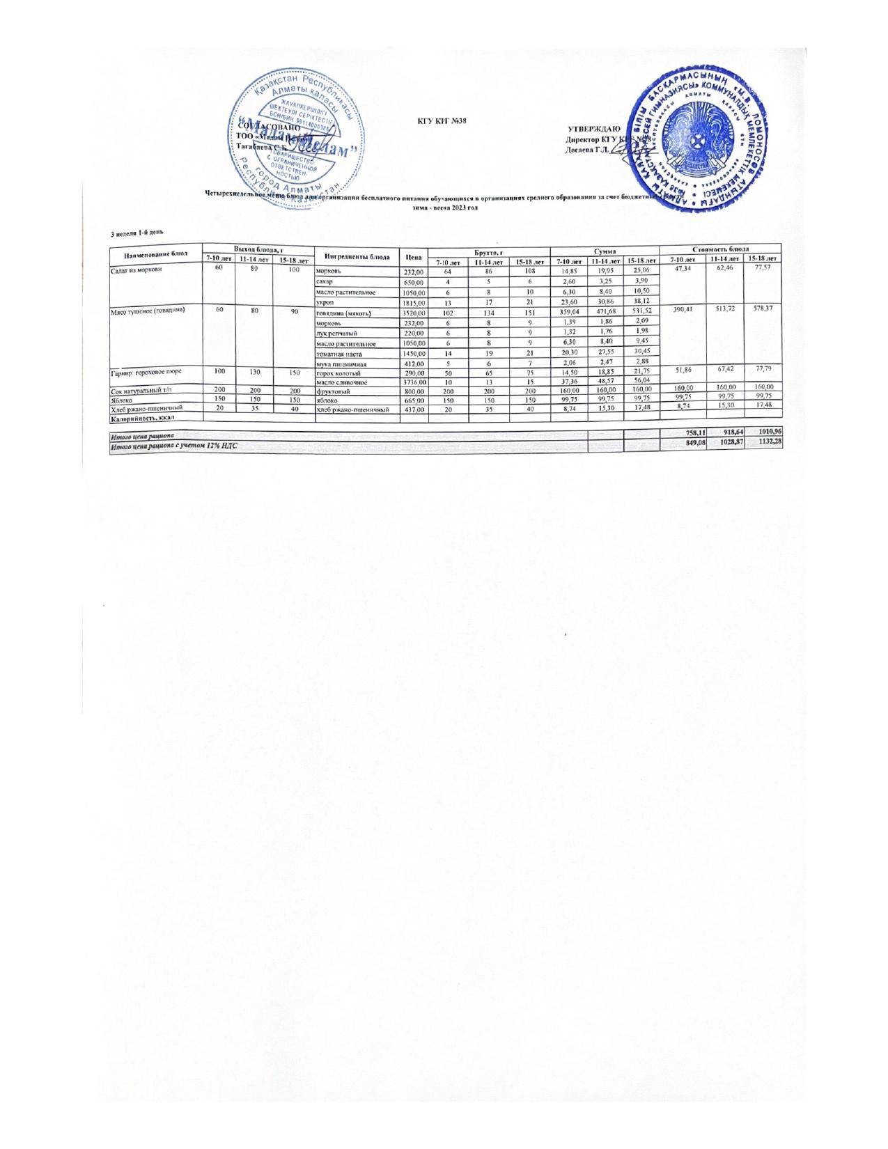 Ас мәзірі 03.04.2023жыл 1 апта 1 күн