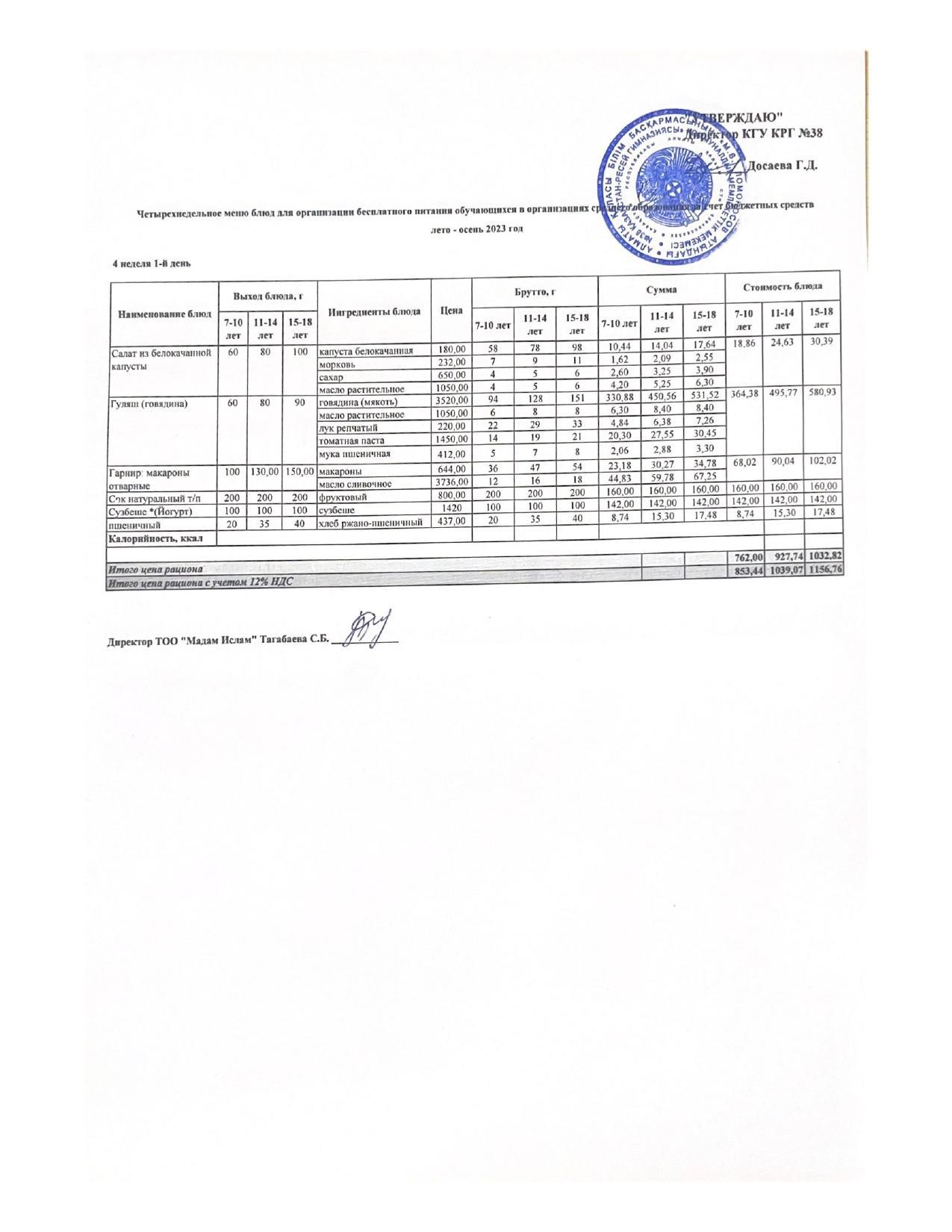 Ас мәзірі 15.09.2023ж 2апта 5күн