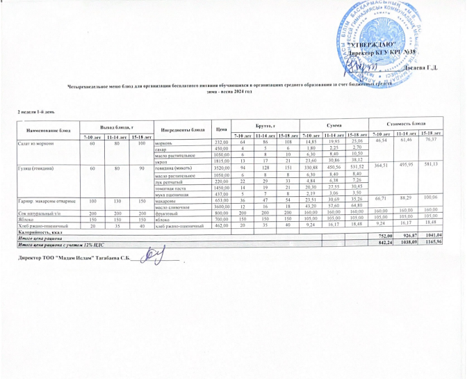 » Ас мәзірі 15.01.2024 ж 2 апта 1 күн