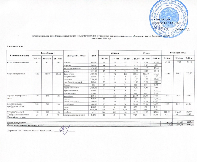 » Ас мәзірі 18.01.2024 ж 2 апта 4 күн