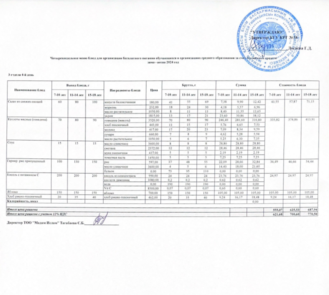» Ас мәзірі 25.01.2024 ж 3 апта 4 күн