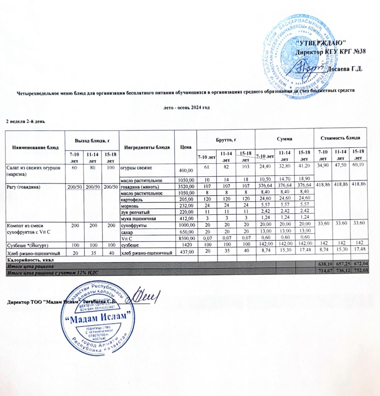 » Ас мәзірі 2 апта 2 күн
