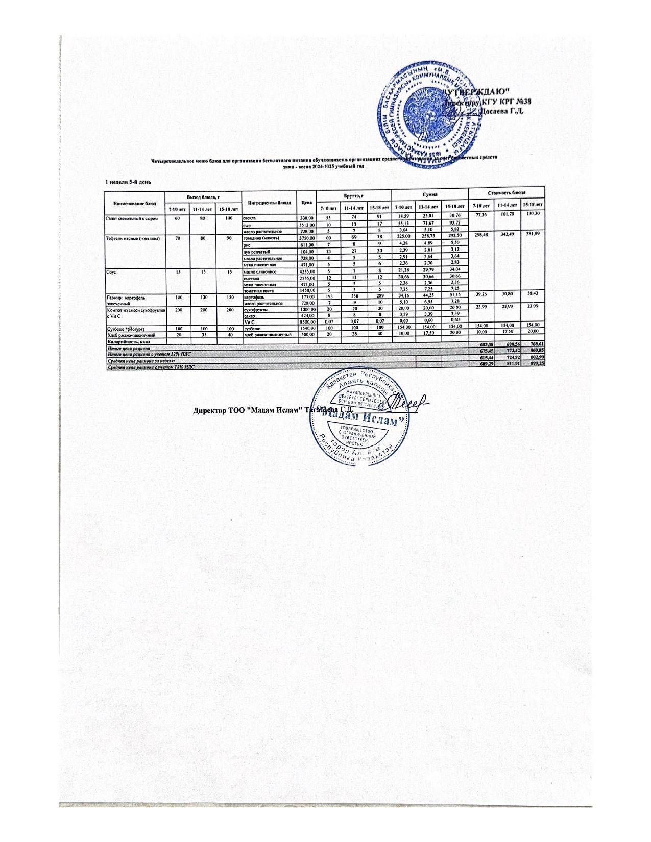 Ас мәзірі 10.01.2025ж 1апта 5күн