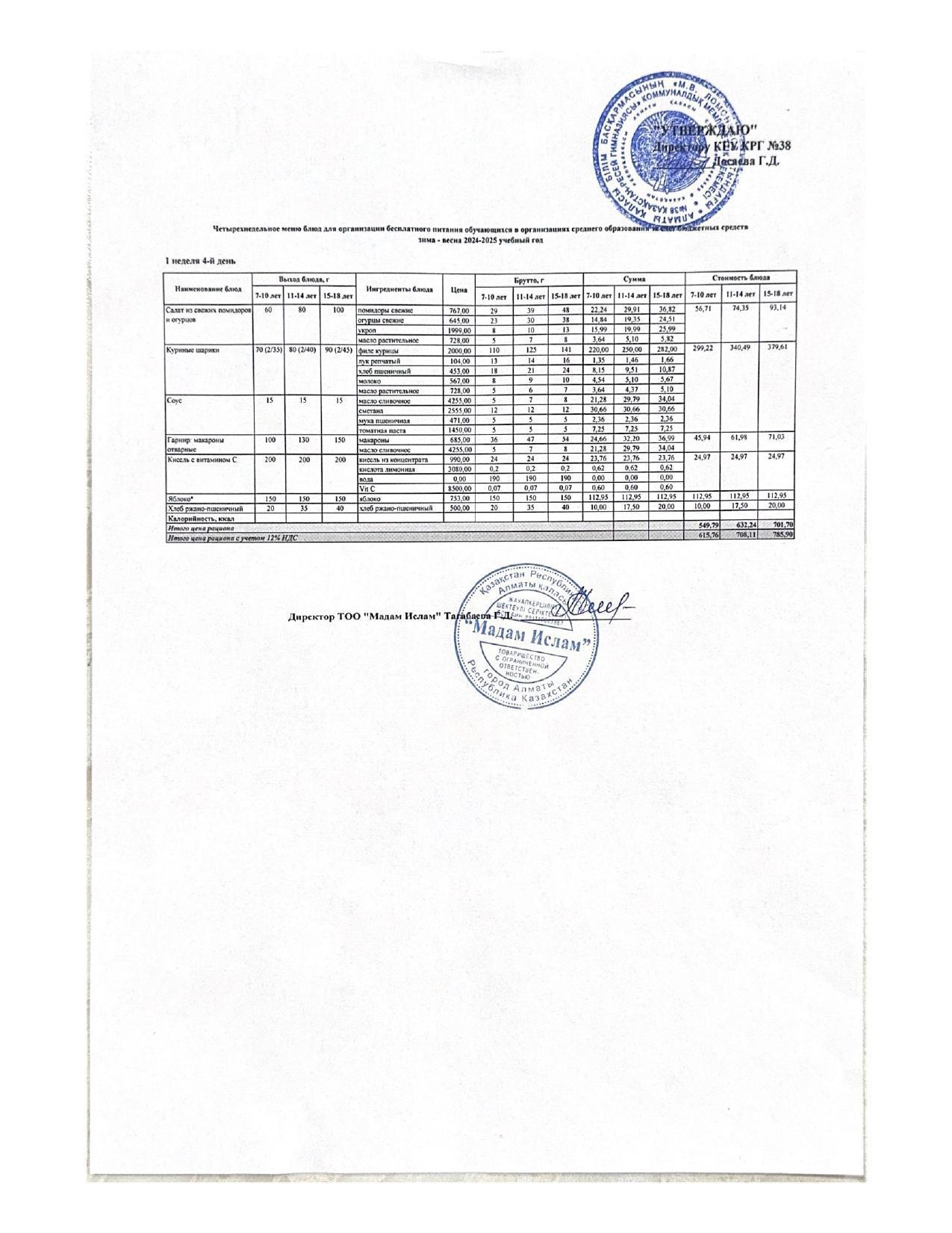 Ас мәзірі 9.01.2025ж 1апта 4күн