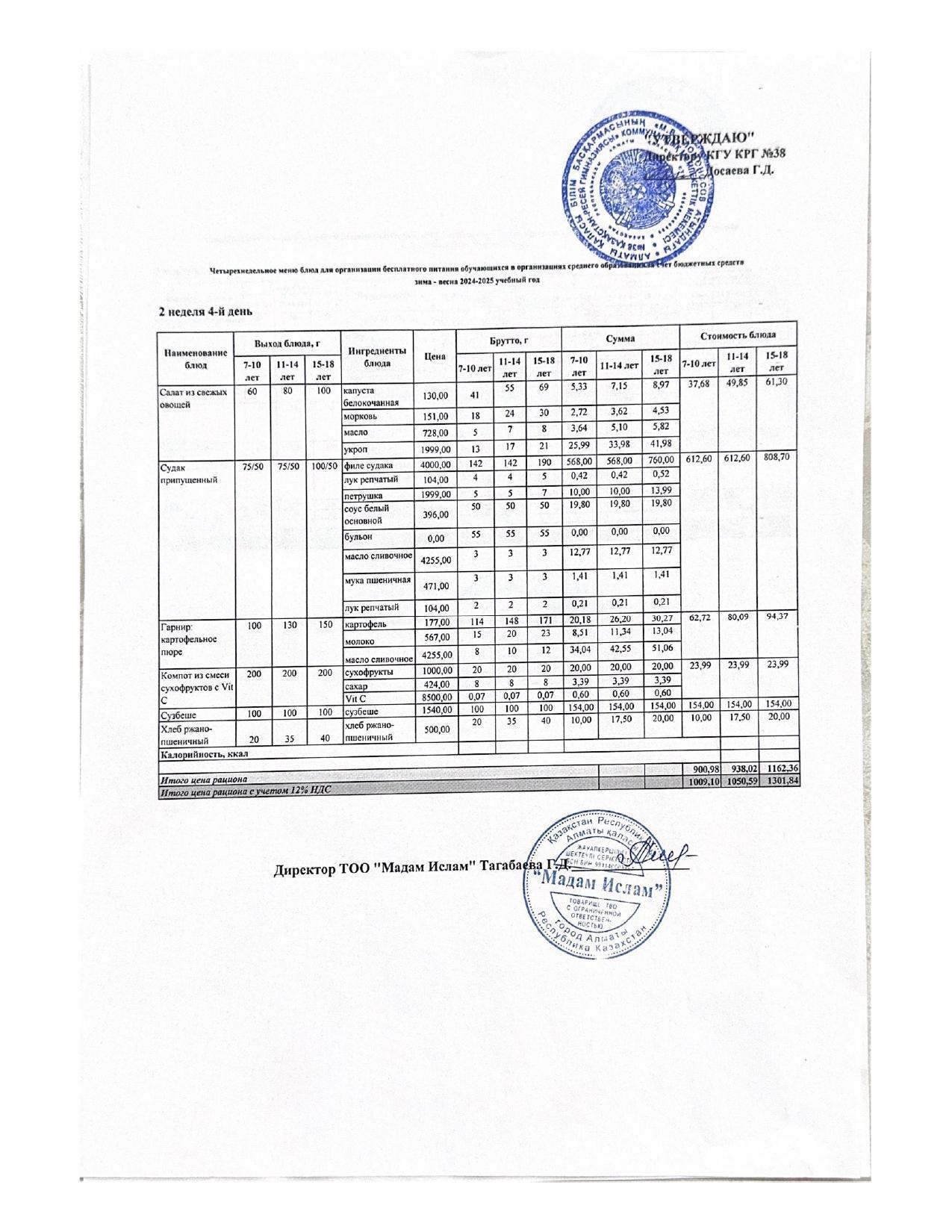 Ас мәзірі 9.01.2025ж 1апта 4күн