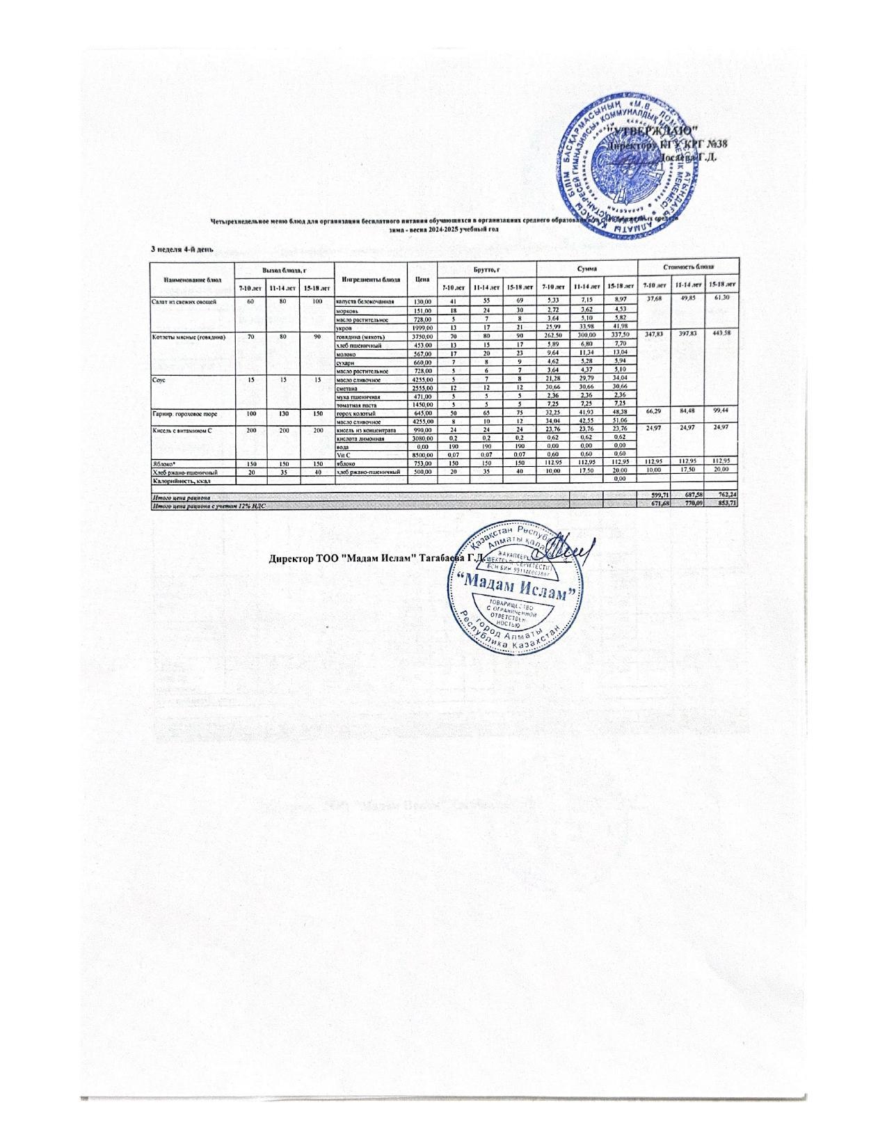 Ас мәзірі 9.01.2025ж 1апта 4күн