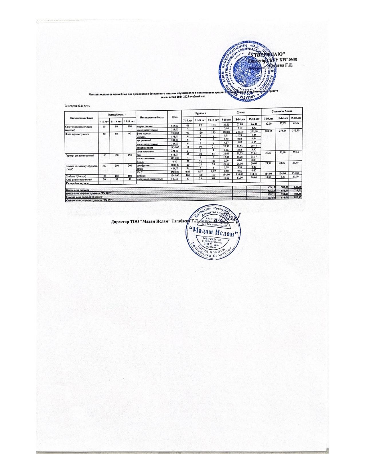 Ас мәзірі 7.03.2025ж 1апта 5күн
