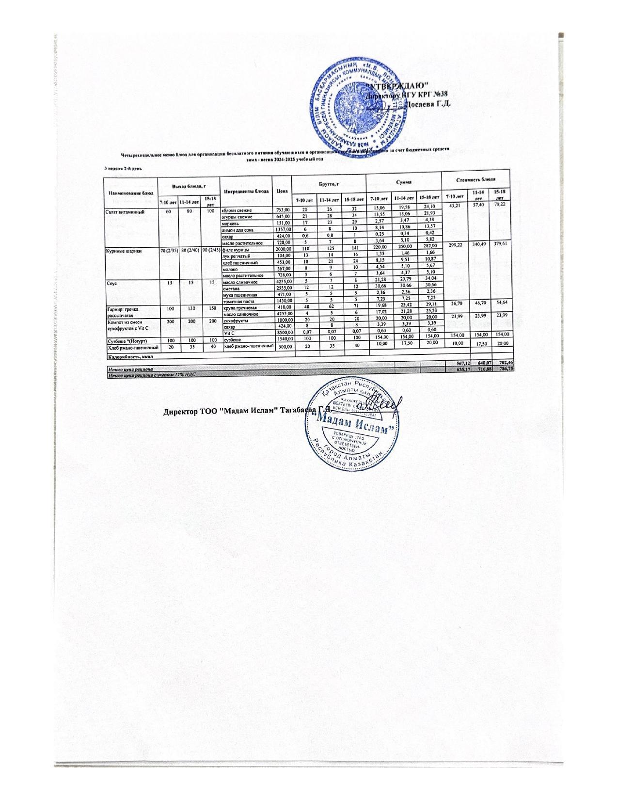 Ас мәзірі 14.01.2025ж 2апта 2күн