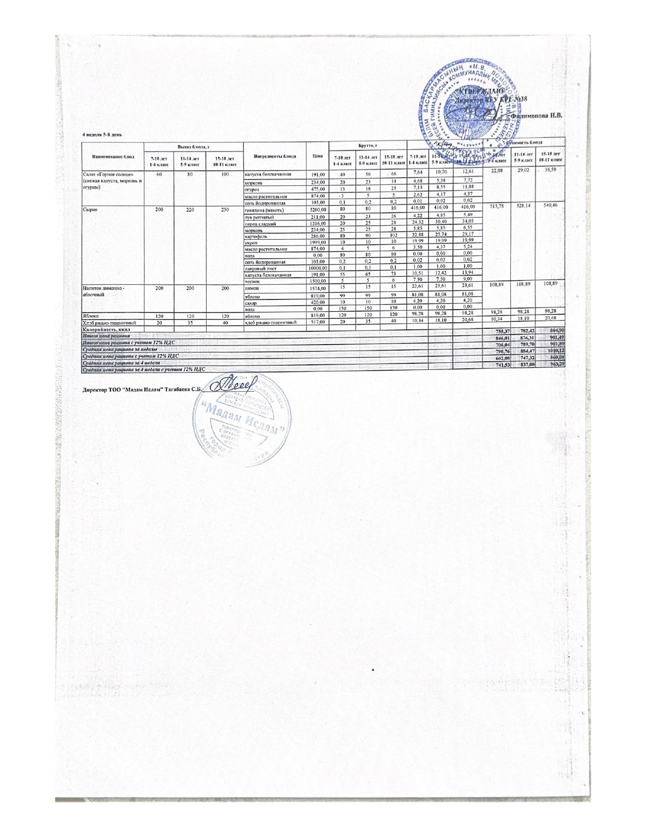 Ас мәзірі 5.09.2025ж 1апта 5күн