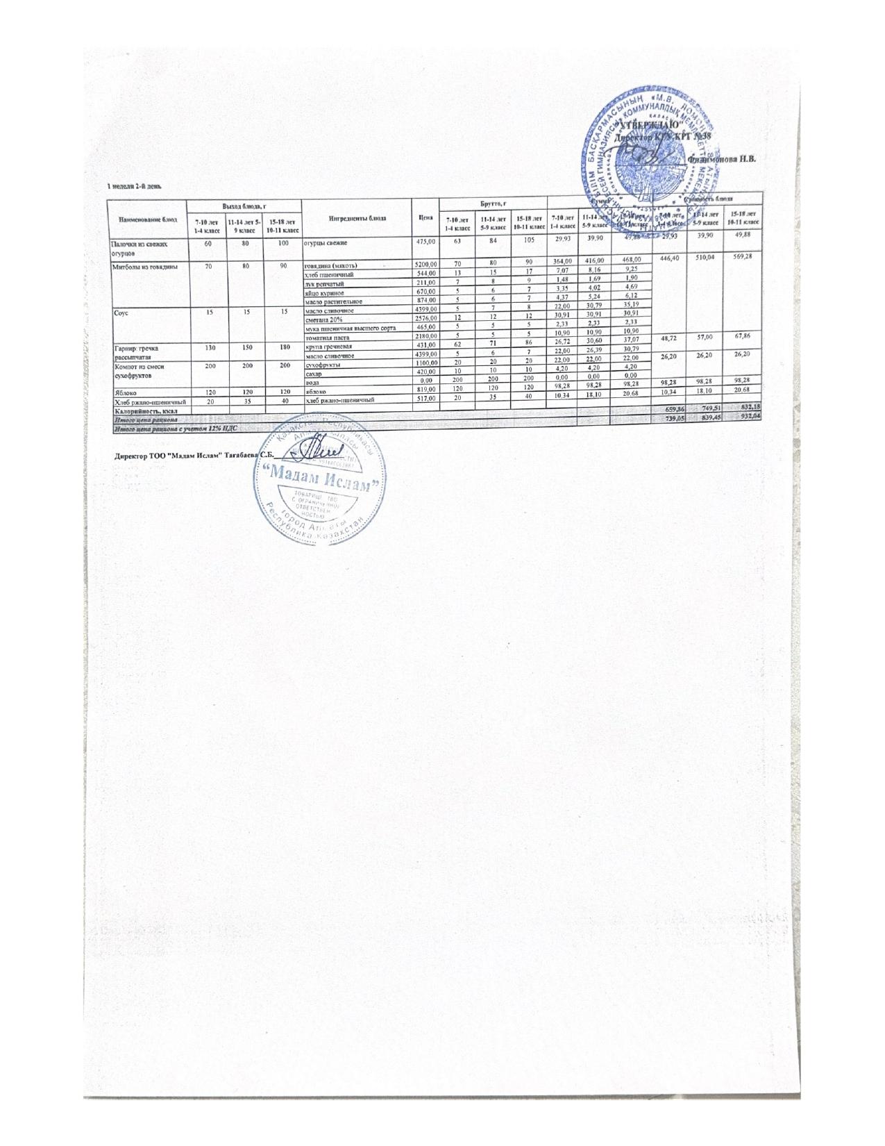 Ас мәзірі 5.09.2025ж 1апта 5күн