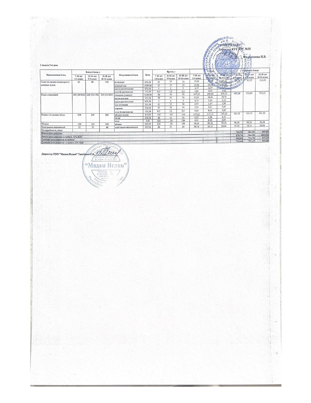 Ас мәзірі 5.09.2025ж 1апта 5күн