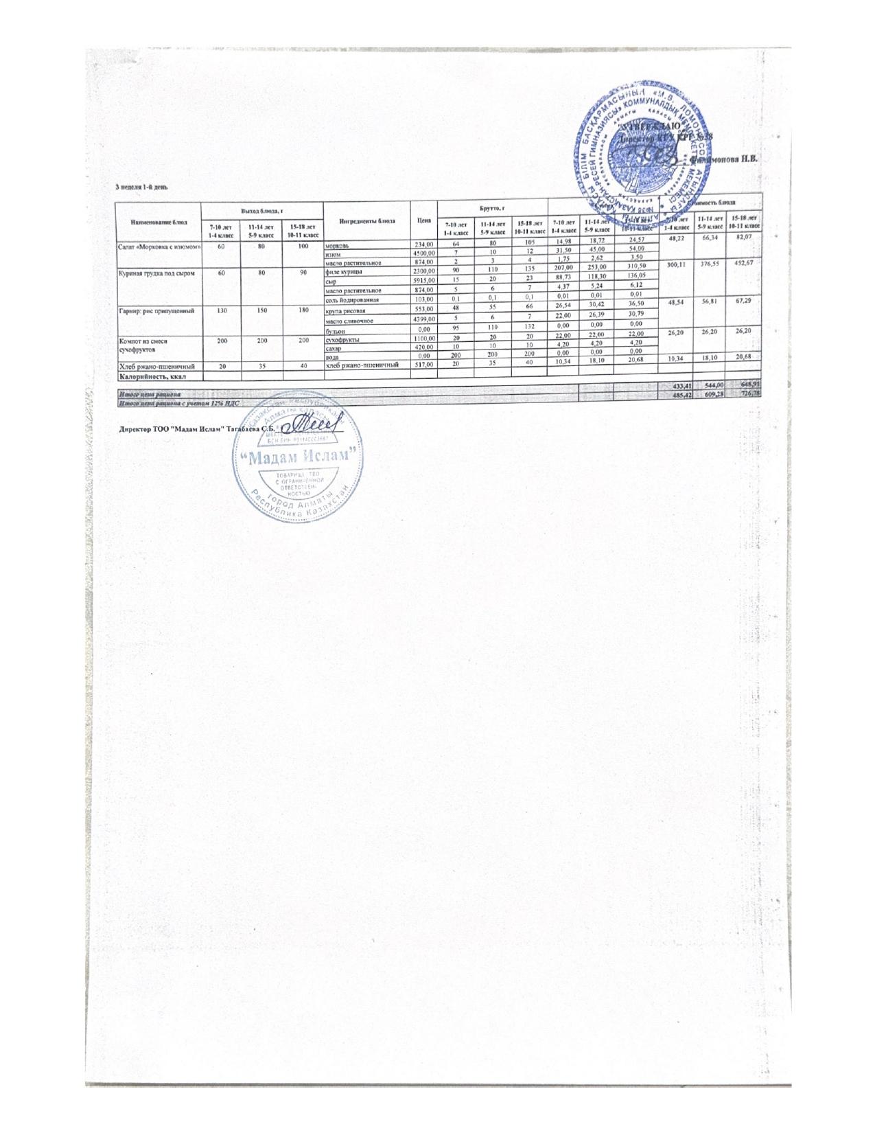 Ас мәзірі 12.05.2025ж 3апта 1күн