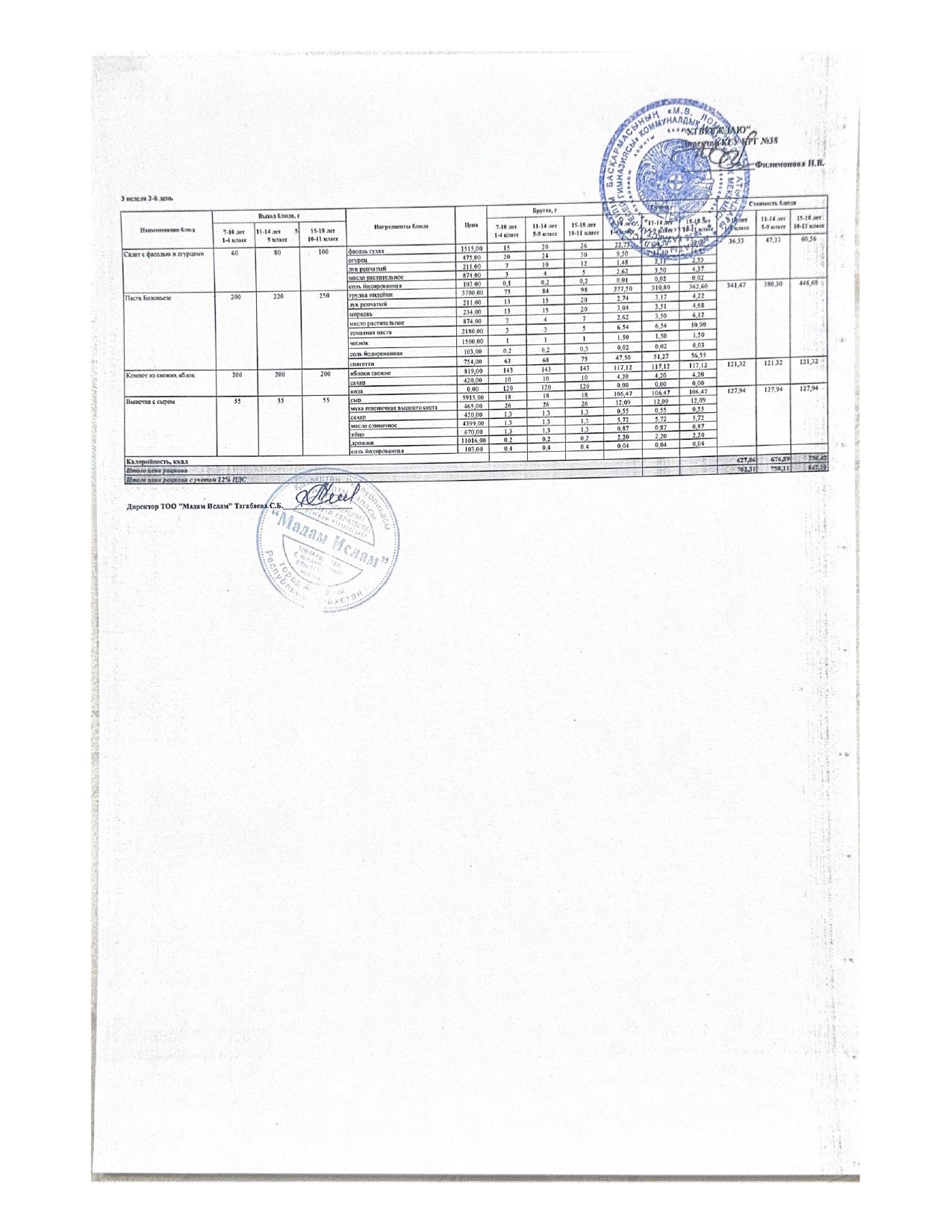 Ас мәзірі 3.09.2025ж 1апта 3күн