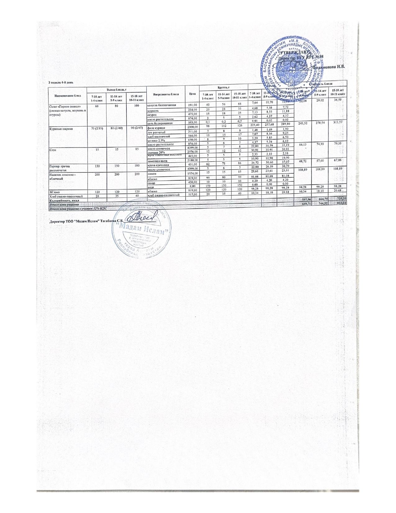 Ас мәзірі 09.10.2025ж 2апта 4күн