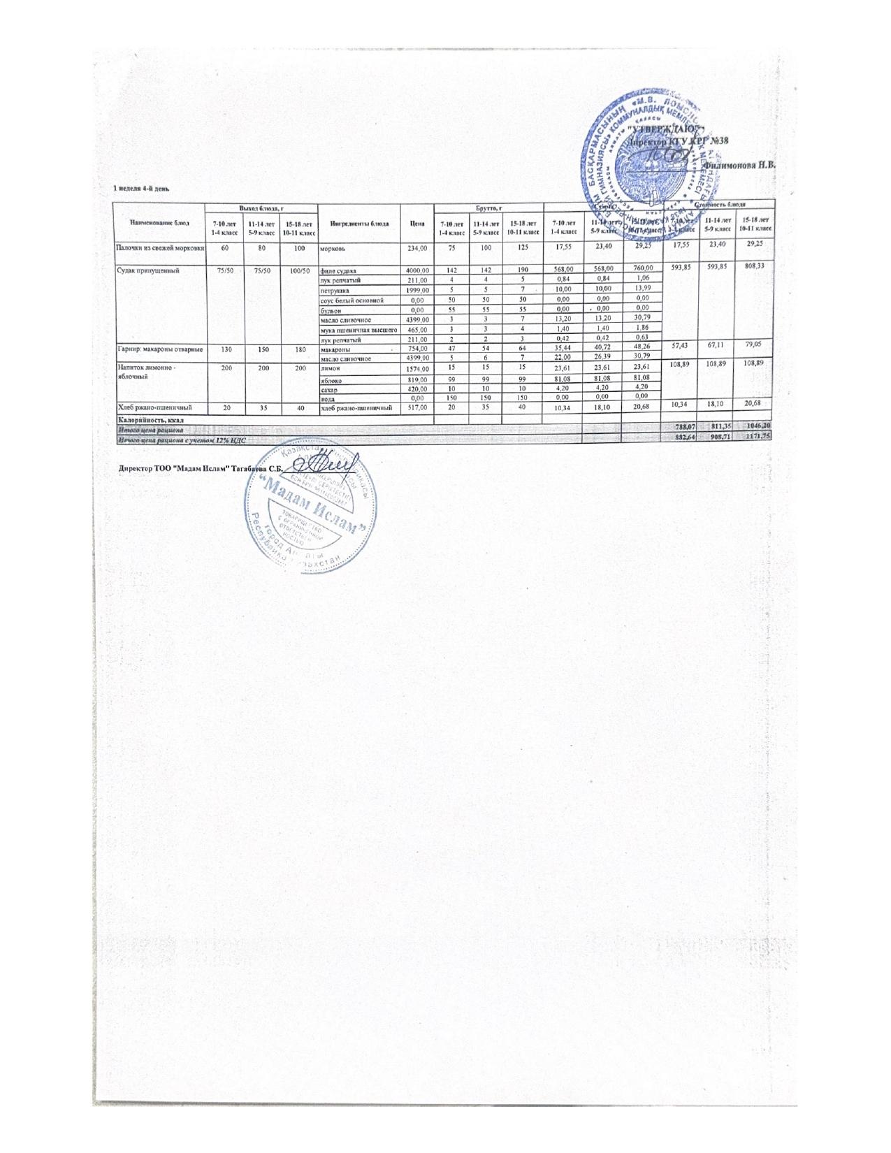 Ас мәзірі 06.11.2025ж 1апта 4күн