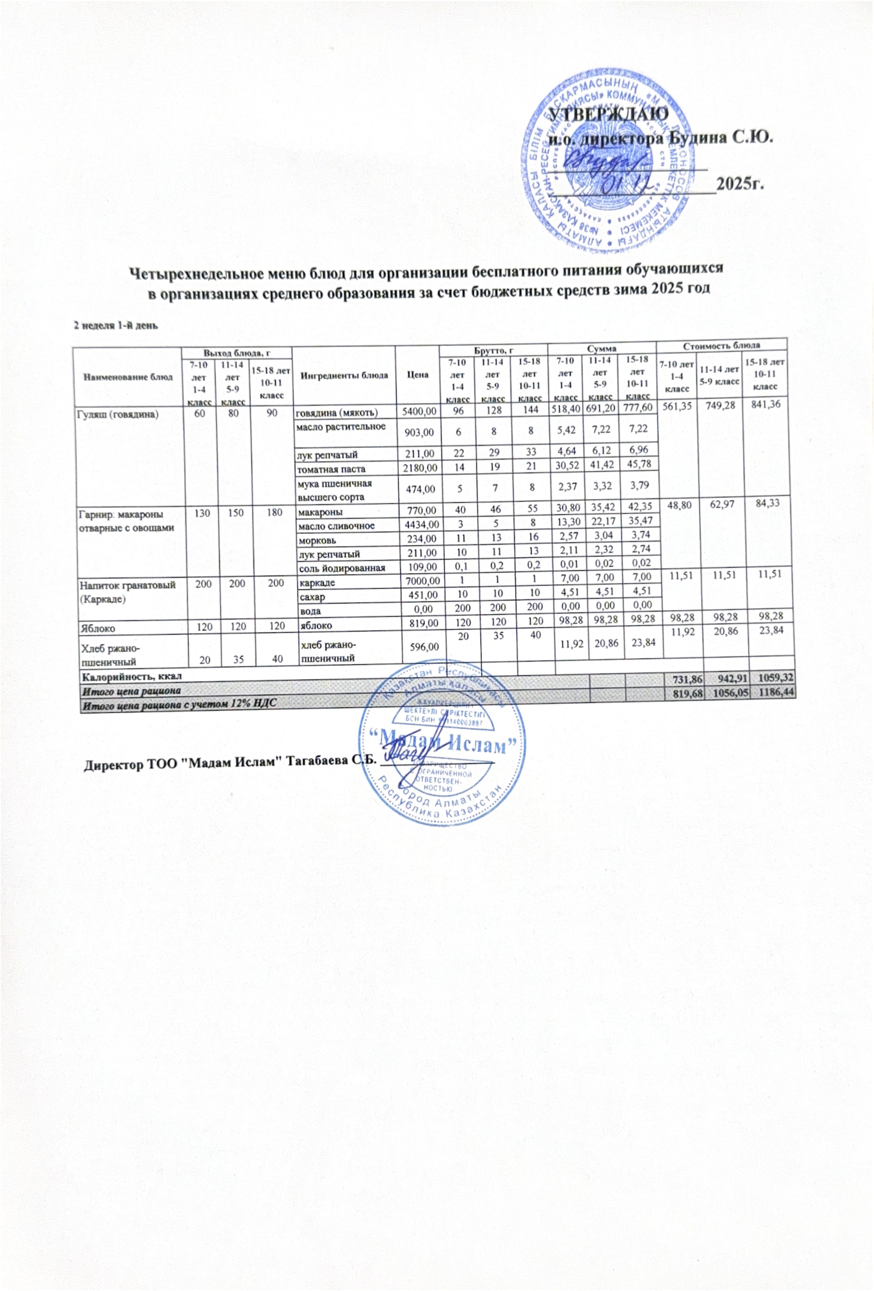 » Ас мәзірі 08.12.2025 2апта 1күн