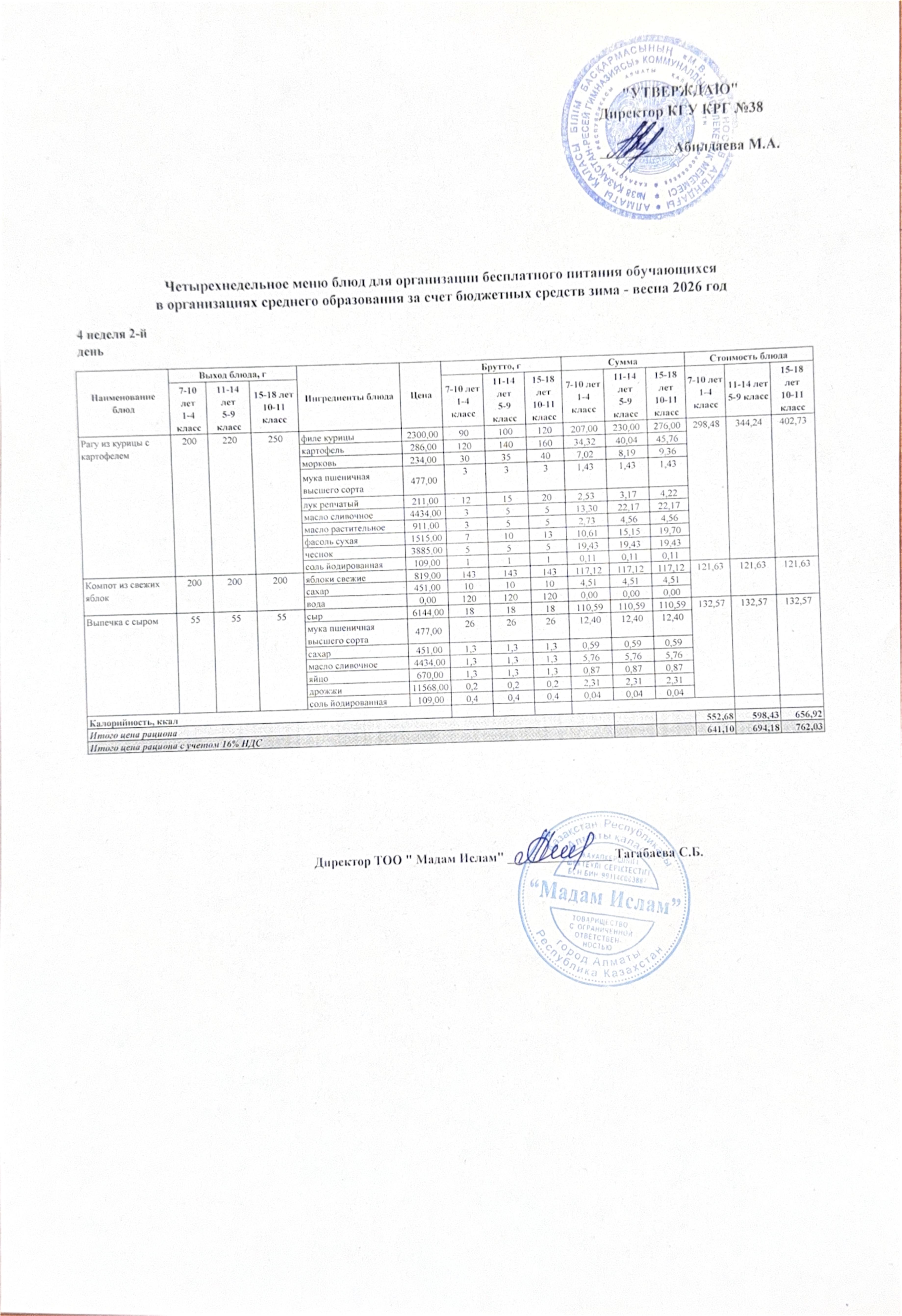 » Ас мәзірі 24.02.2026ж 4апта 2 күн
