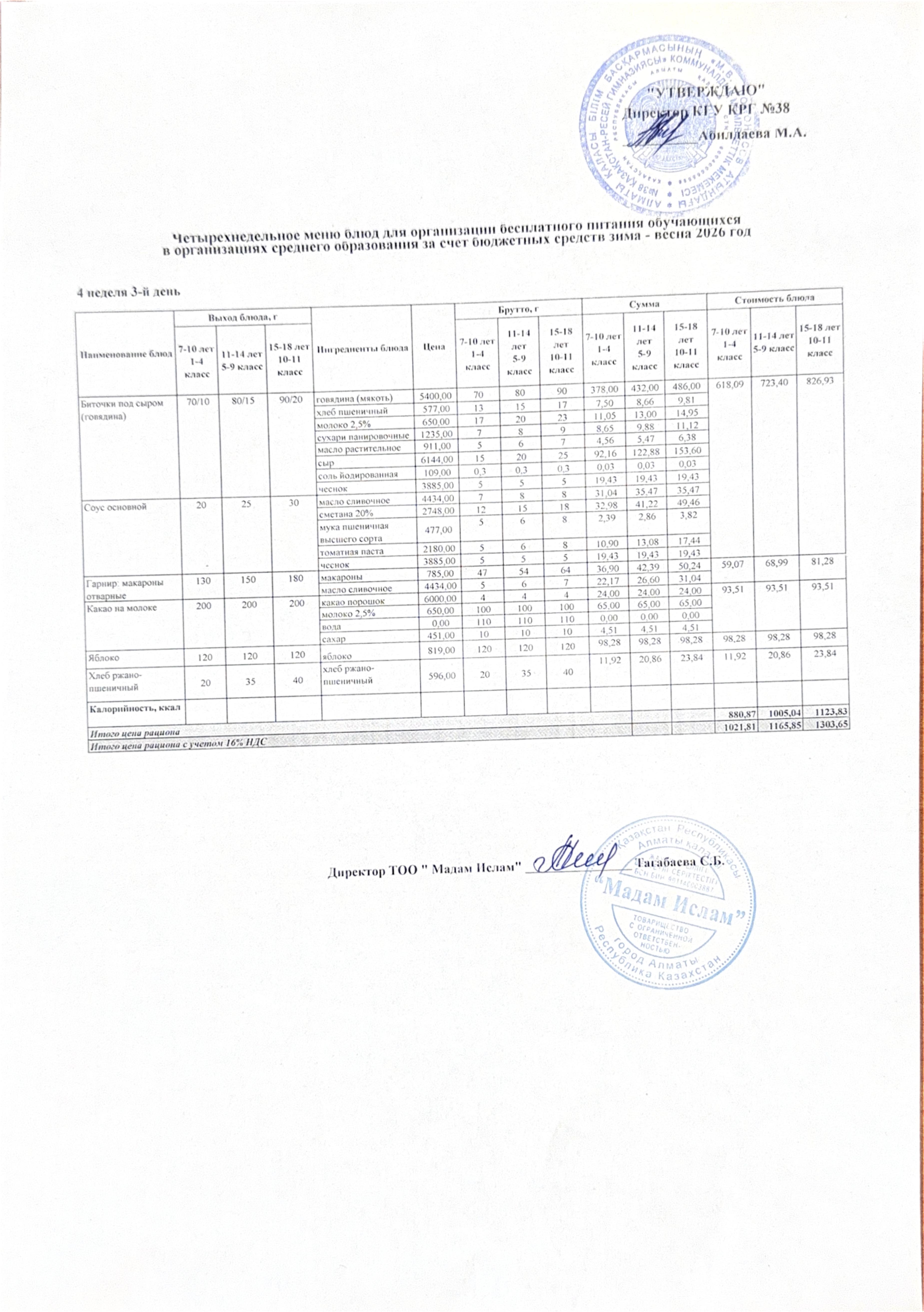 Ас мәзірі 04.02.2026ж 1апта 3күн