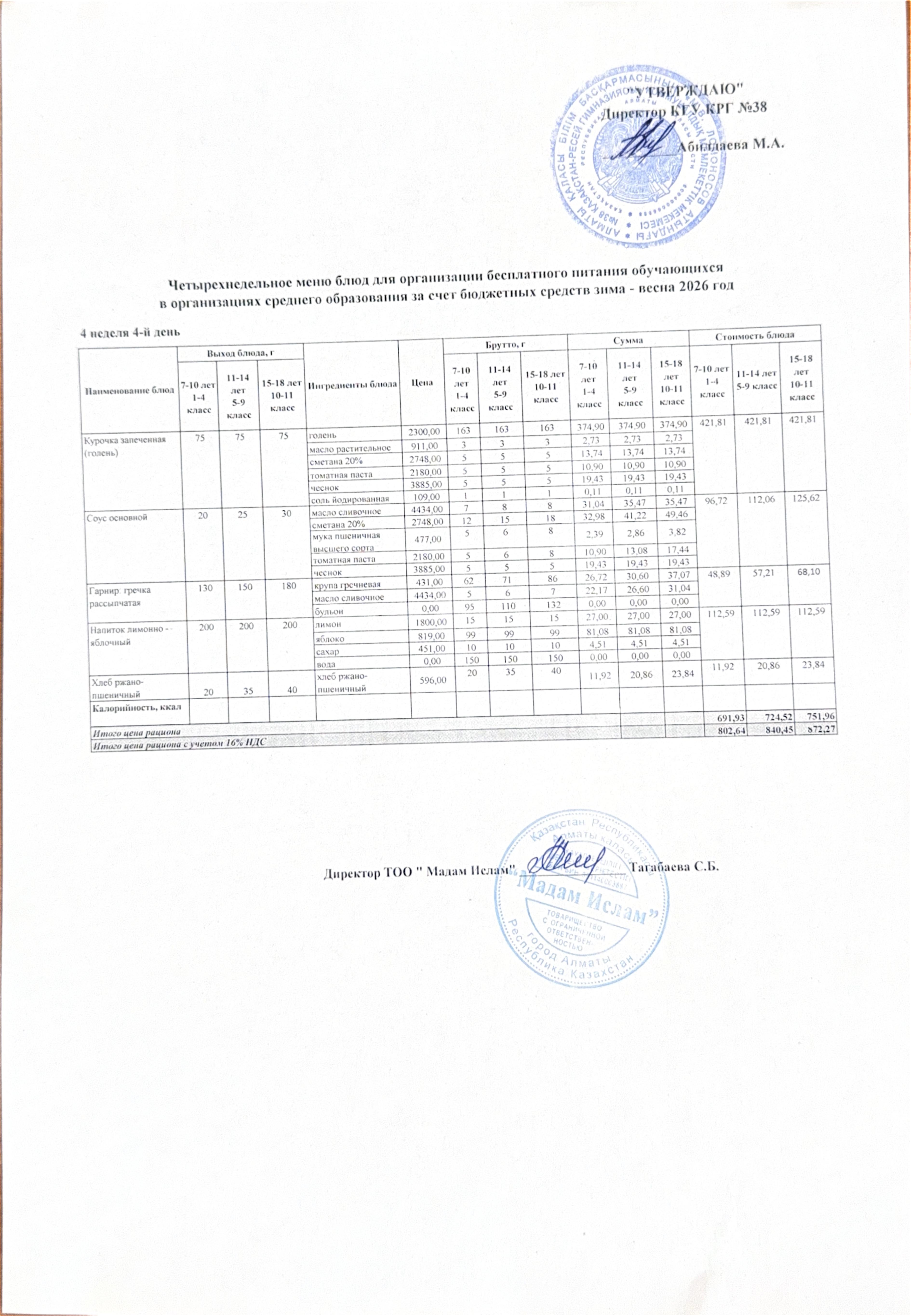 Ас мәзірі 15.01.2026жы 2апта 4күн