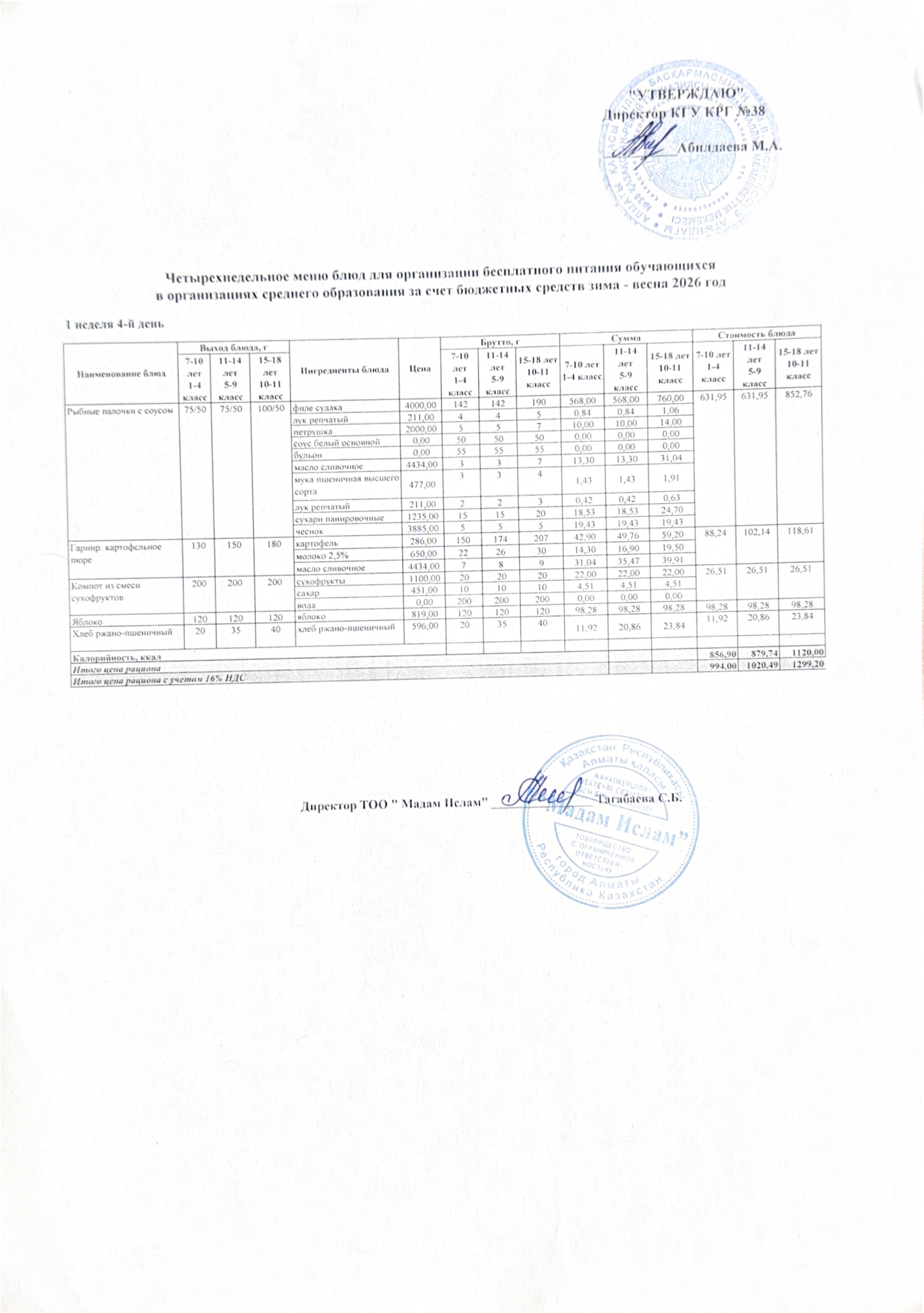 Ас мәзірі 05.02.2026ж 1апта 4күн