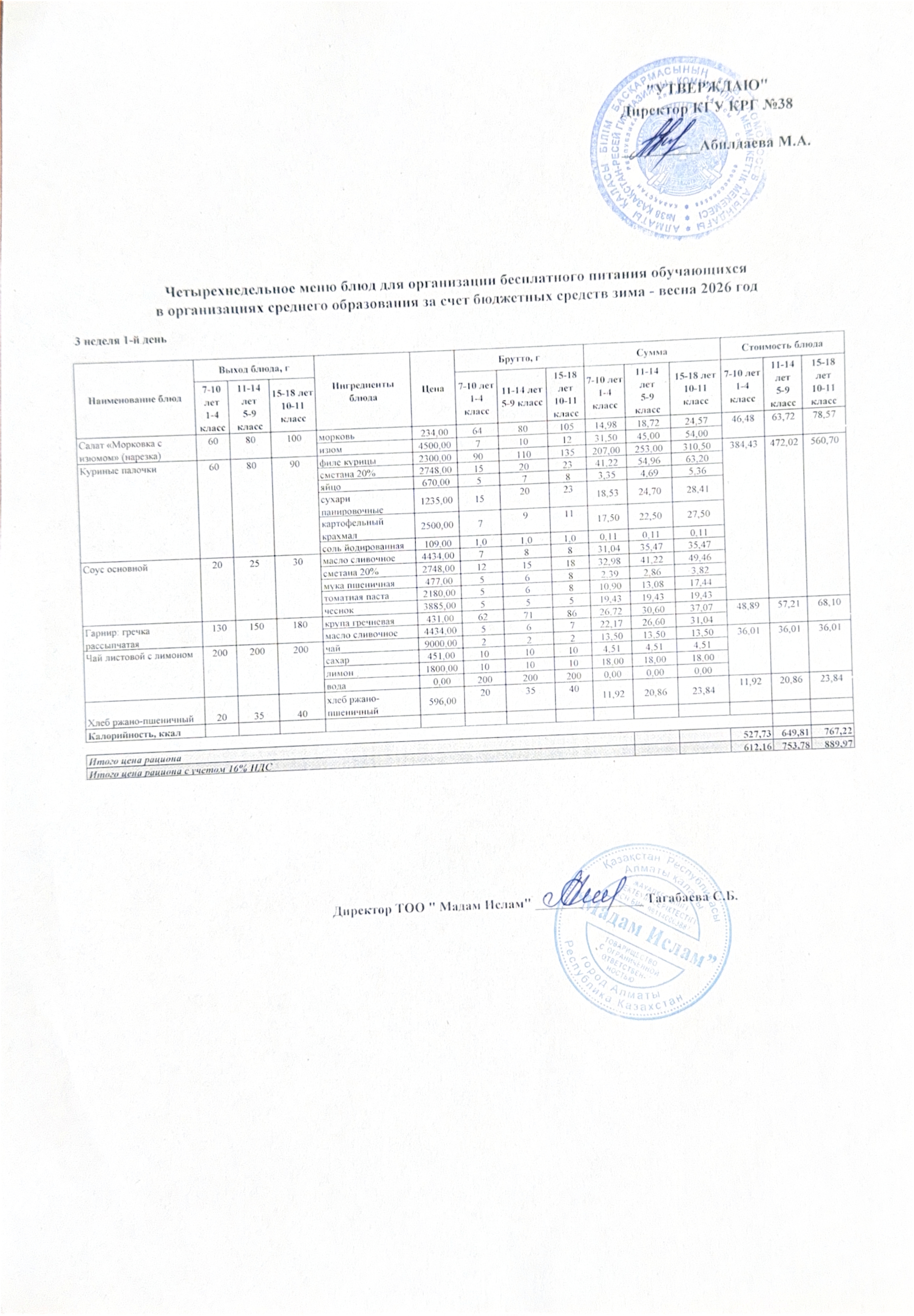 » Ас мәзірі 20.04.2026ж 3апта 1күн